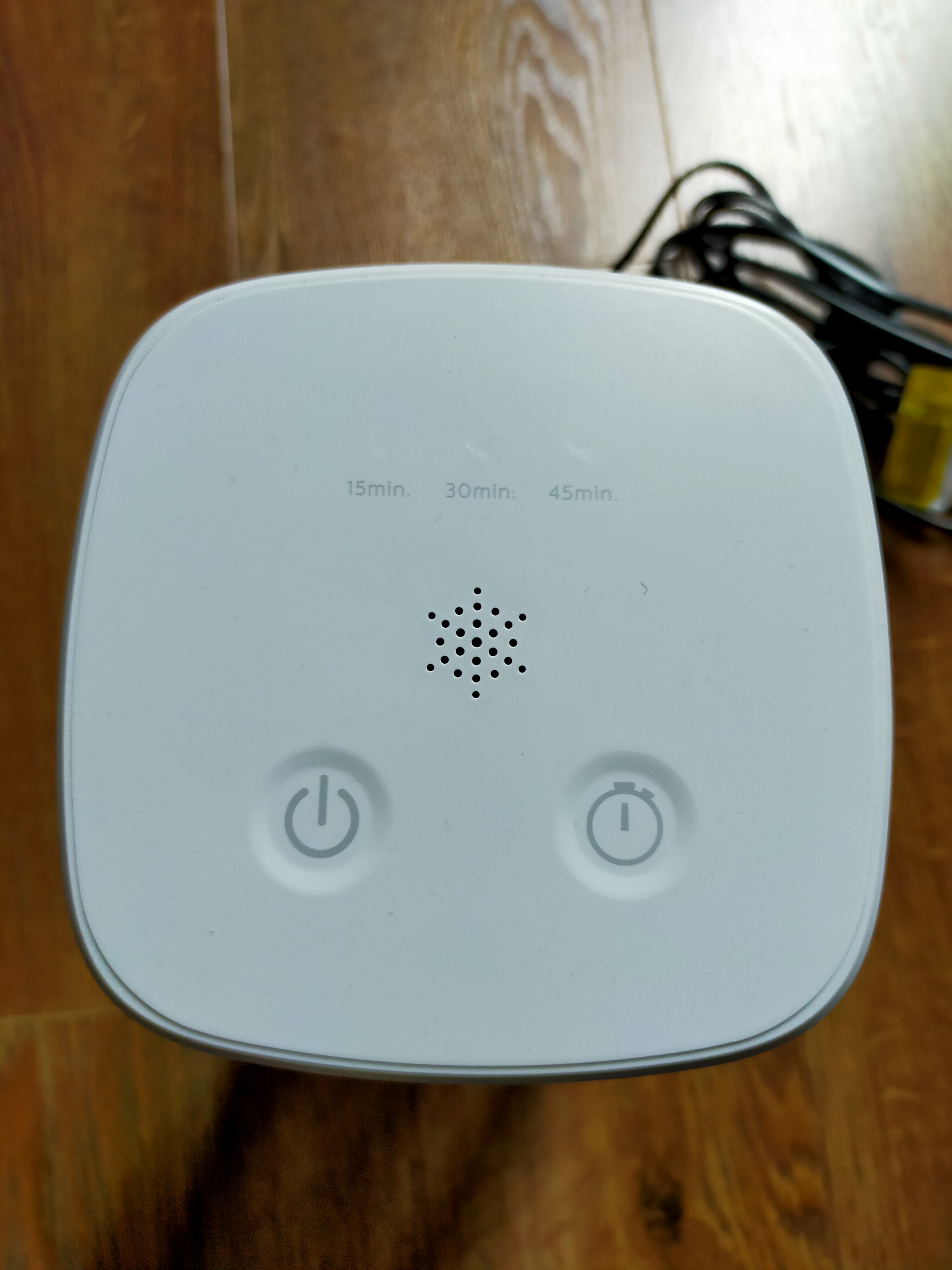 De lamp is handzaam en heeft een lang snoer. Dat is prettig, omdat je deze in het midden van een ruimte wil zetten. Middels de Engelstalige spraakfunctie wordt je door het menu geloodst, dat gaat heel handig en duidelijk. Het is een vriendelijke en duidelijke stem. Er zijn drie tijden die je kan selecteren: 15 minuten, 30 minuten en 45 minuten. Per ruimte kan je een bepaalde tijd selecteren. De badkamer en keuken duren 15 minuten, een slaapkamer 30 minuten en de woonkamer 45 minuten. De tijd selecteer je door het "timer" knopje in te drukken.