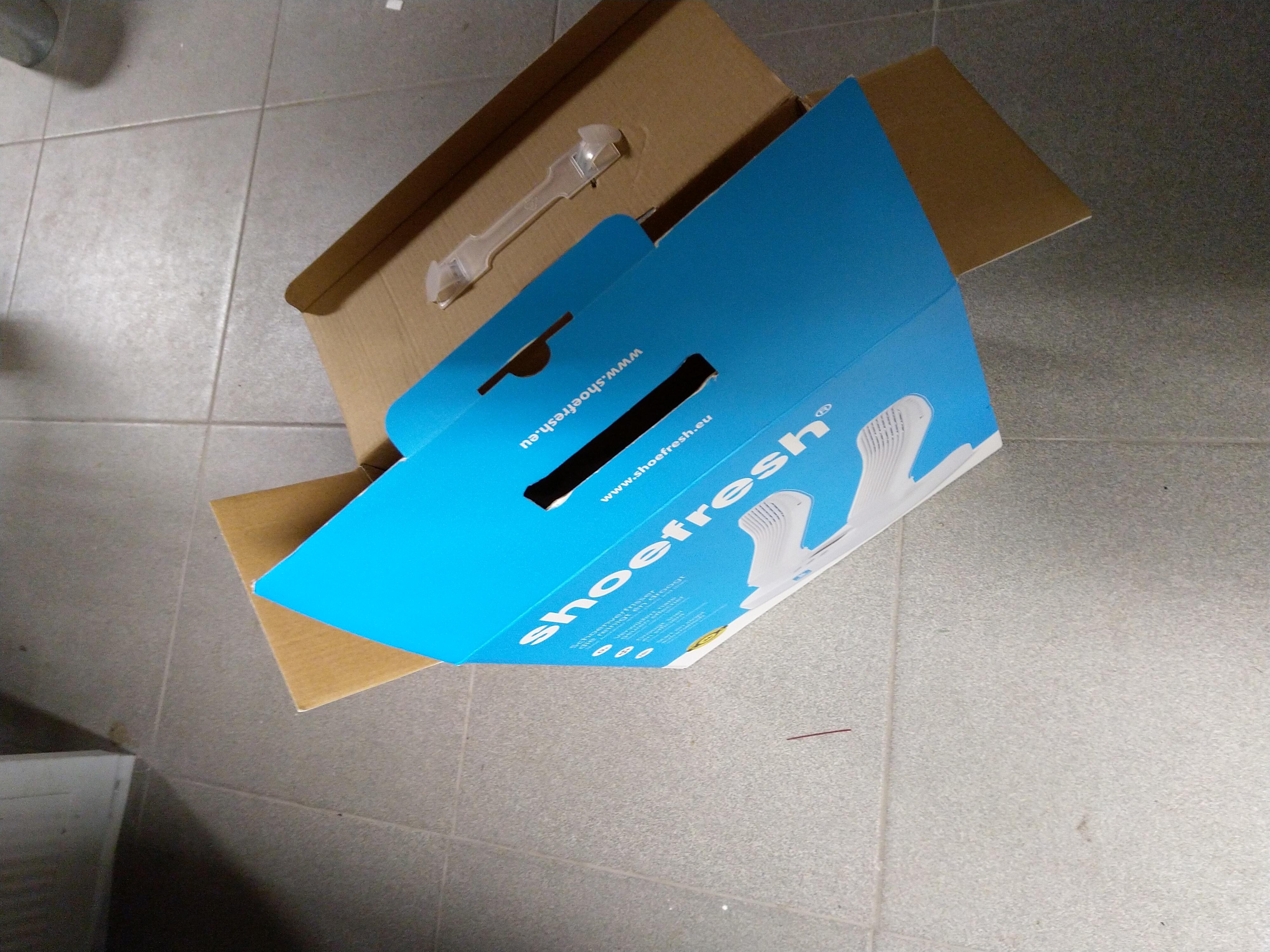 De Shoefresh is goed verpakt in een stevige doos. De Shoefresh zet je daarna makkelijk in elkaar. Je steekt de schoenhouders in het platform en je bent klaar. Zo gauw je de stekker in het stopcontact steekt begint de Shoefresh met het reinigen. Het enige dat je dan nog zou kunnen doen is het aanpassen van de instellingen.
