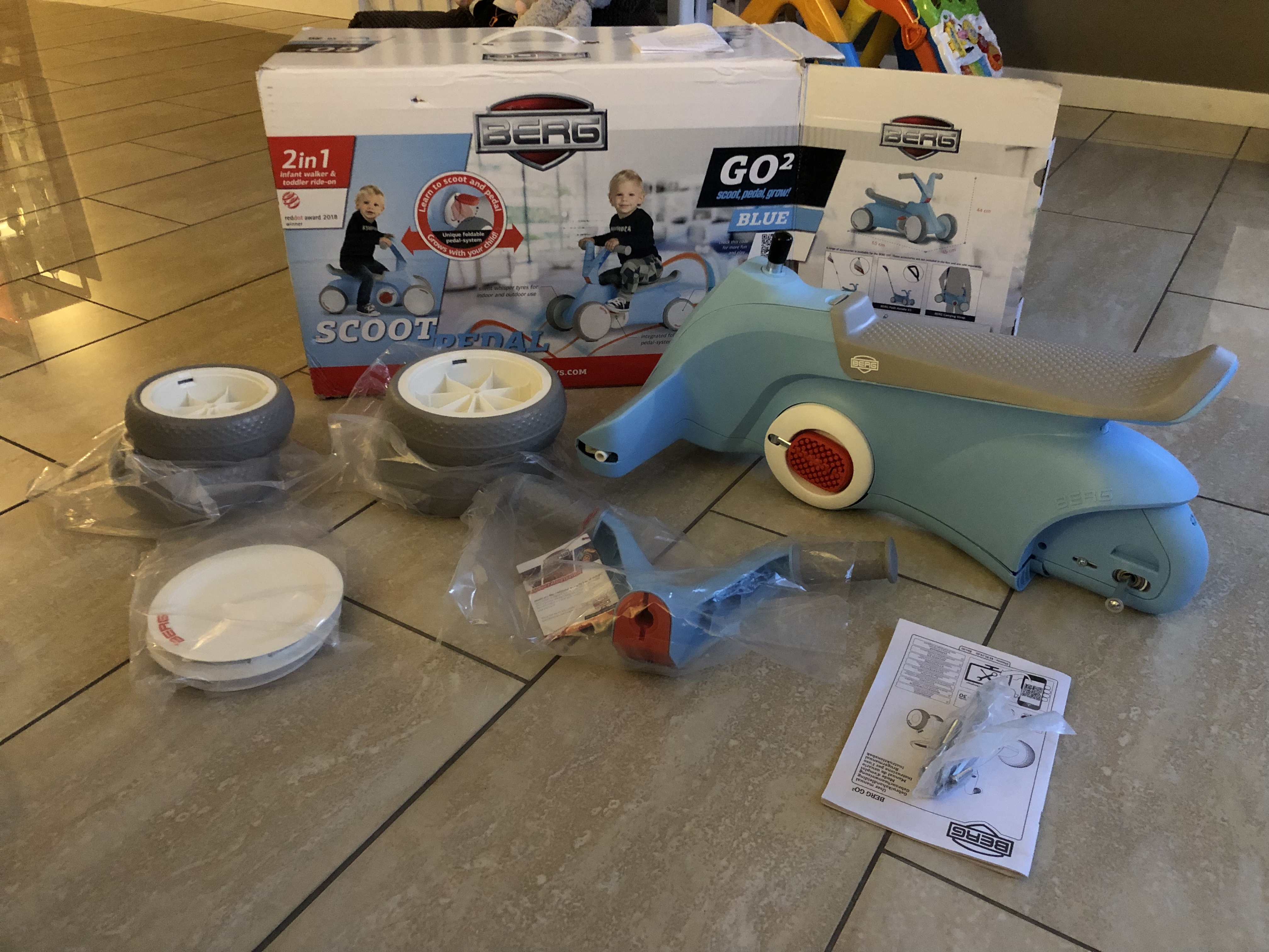 Bij het in elkaar zetten heeft mijn mama geholpen. Dit was eigenlijk vrij eenvoudig! Alles is makkelijk te volgen uit de bijgeleverde handleiding. Al het gereedschap die benodigd is zit erbij. Geen moeilijk gedoe dus met het zoeken naar het juiste gereedschap in je eigen gereedschapskist, waar je trouwens toch nooit hebt liggen wat je nou echt nodig hebt ;-). Binnen 15 minuten was het bouwpakket omgetoverd tot mijn gave loopfiets!