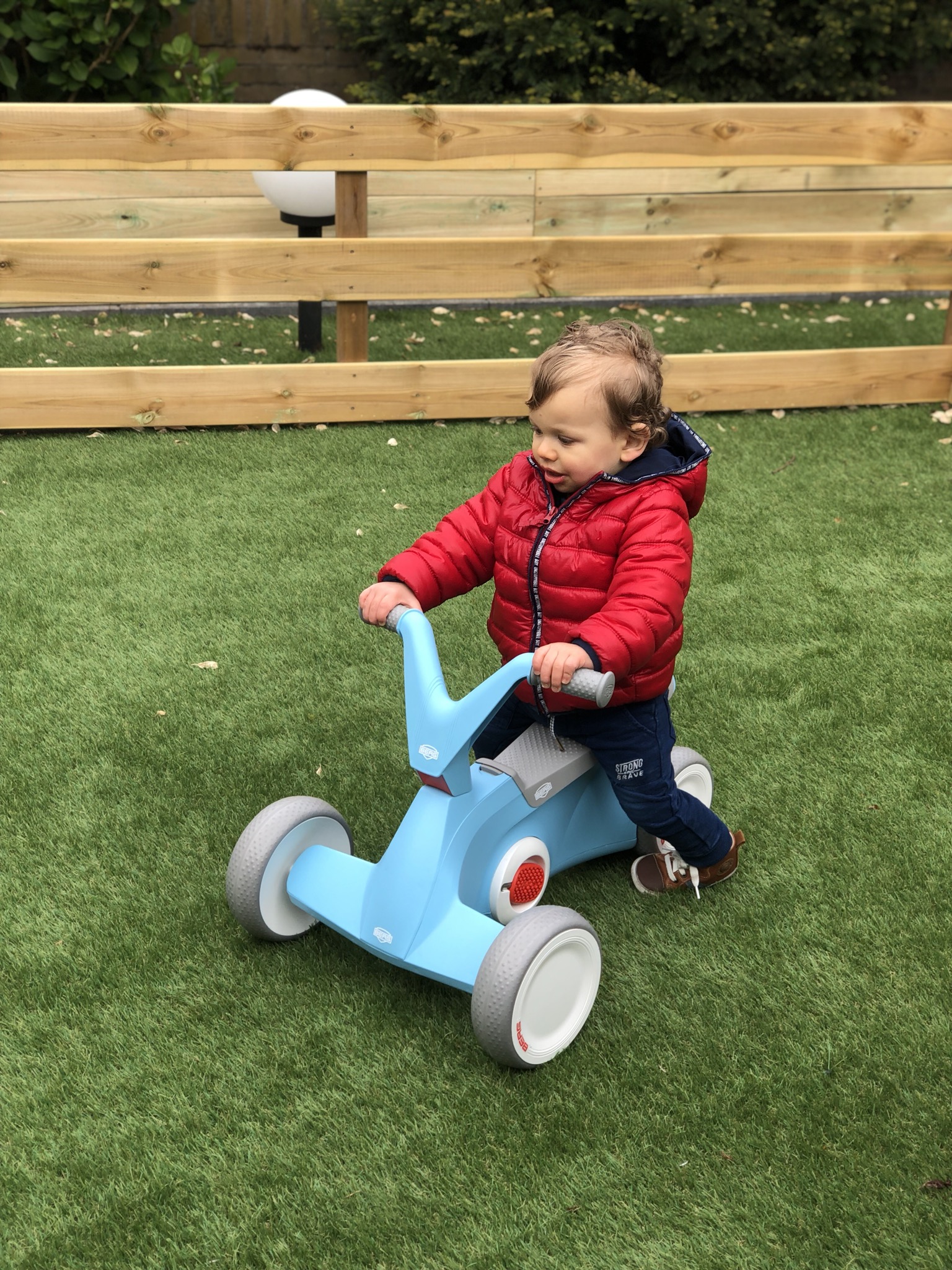 Yeah! Ik ben erg blij met mijn mooie loopfiets. Ik kan er zowel binnen als buiten lekker mee spelen. De loopfiets is erg stevig. Ik kan erop zitten en ervoor staan. Als ik ervoor sta kan ik mijn bolide lopend meenemen waar ik maar heen wil. Binnenkort gaat mijn mama mij leren fietsen hierop. Hierdoor kan ik lekker lang gebruik maken van mijn loopfiets, want mijn andere loopwagen zal ik al snel niet meer gebruiken. Ik denk dat mijn vriendjes straks allemaal jaloers zullen zijn als ze mij voorbij zien racen :-)