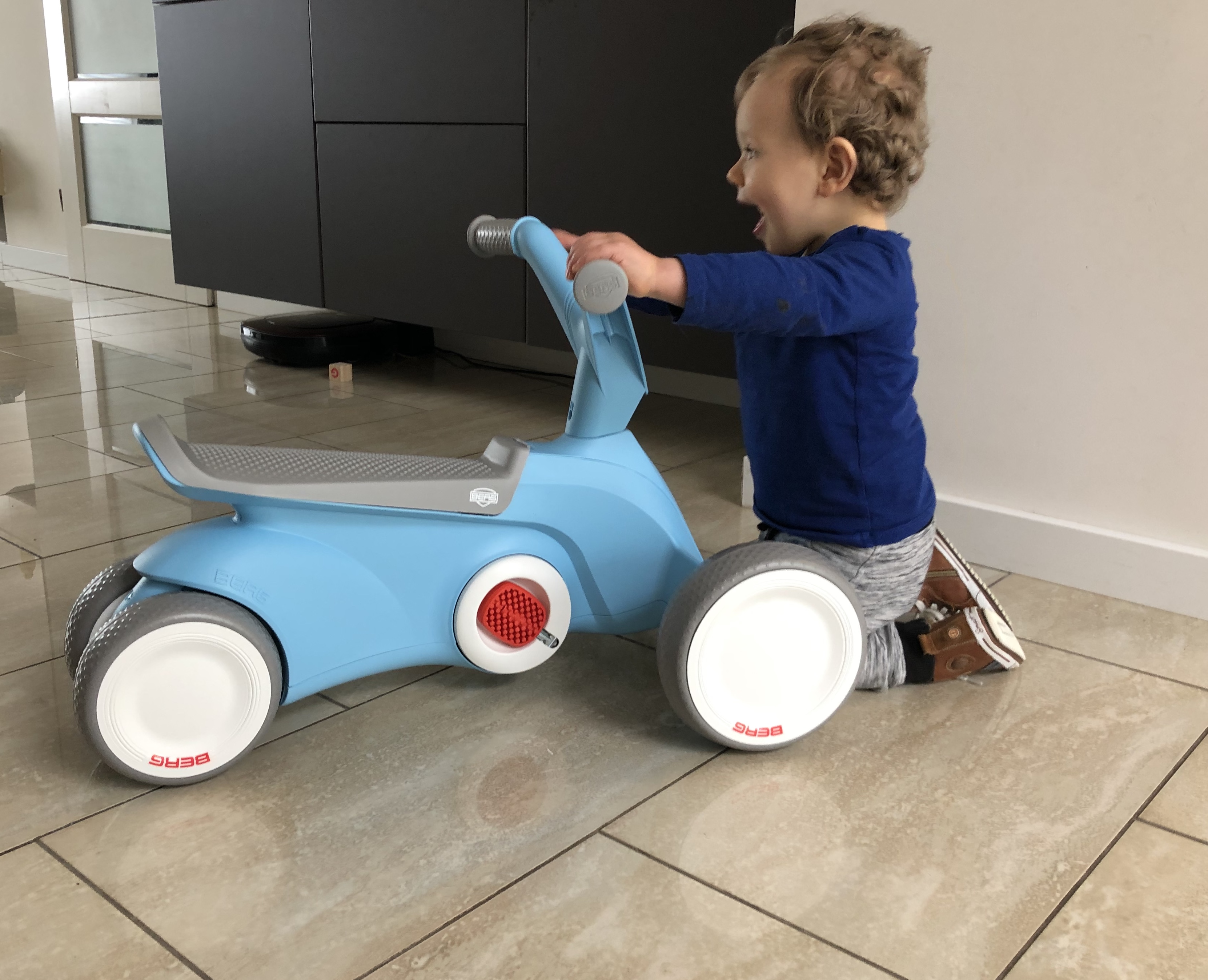 De loopfiets is heel stevig. Als ik mij aan het stuur optrek kantelt de loopfiets niet. Gezien mijn leeftijd ben ik soms nog wat onhandig, dus mijn mama is erg blij dat er geen onnodige valpartijen zijn daardoor. Er zitten geen onderdelen op waar ik mij aan kan bezeren of in mijn mond kan stoppen. Ideaal! Ik stop namelijk graag alles wat ik tegenkom in mijn mond :-)