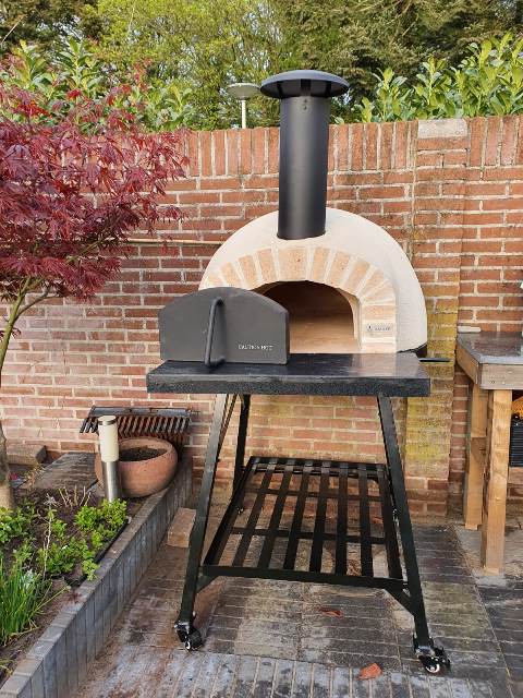 Houtgestookte pizza oven met onderstel , bakvloer 70 cm , professionele kwaliteit,