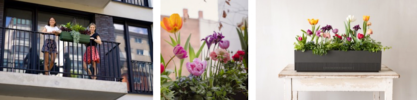 De balkonbak wordt met bloemenkennis en creativiteit als een boeket samengesteld. En hij wordt ook nog eens thuisgebracht. Er zijn kleurrijke voorjaarscreaties met tulpen, narcissen, ranonkels, blauwe druifjes en nog veel meer vroegbloeiers.