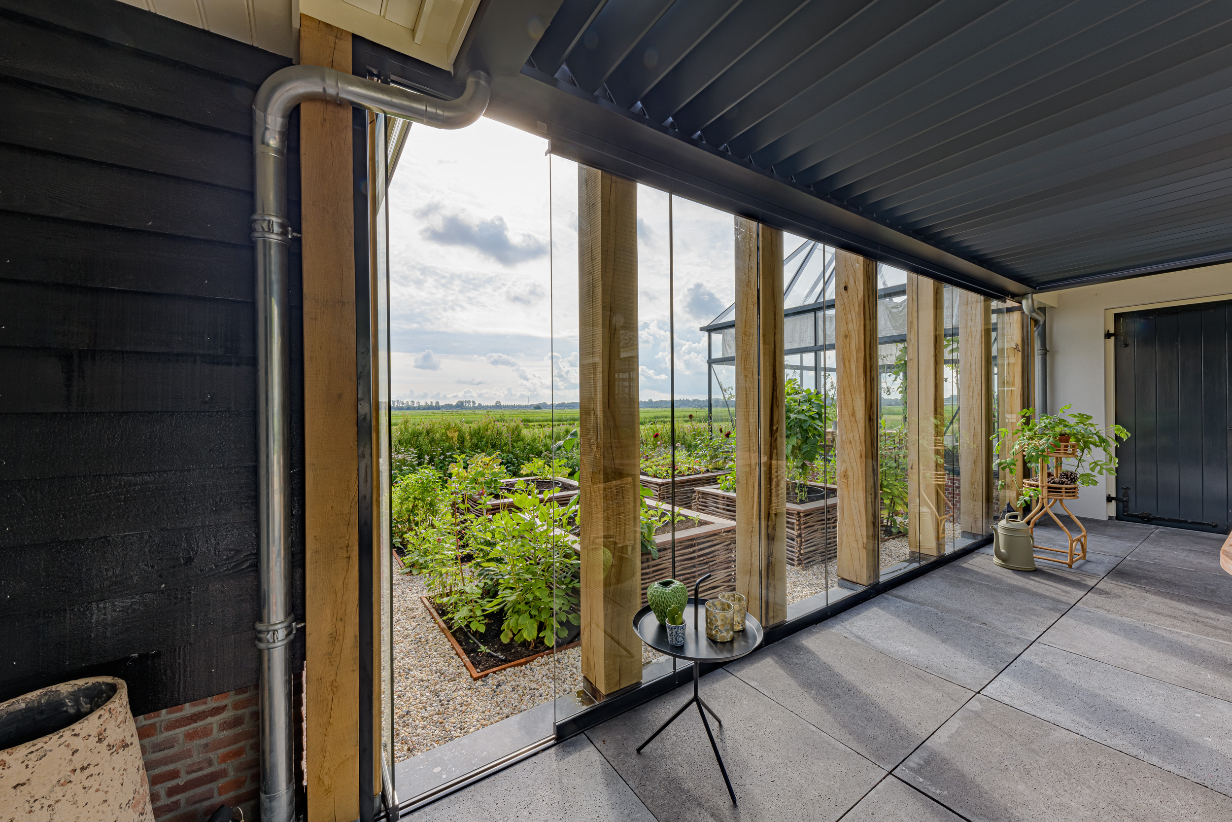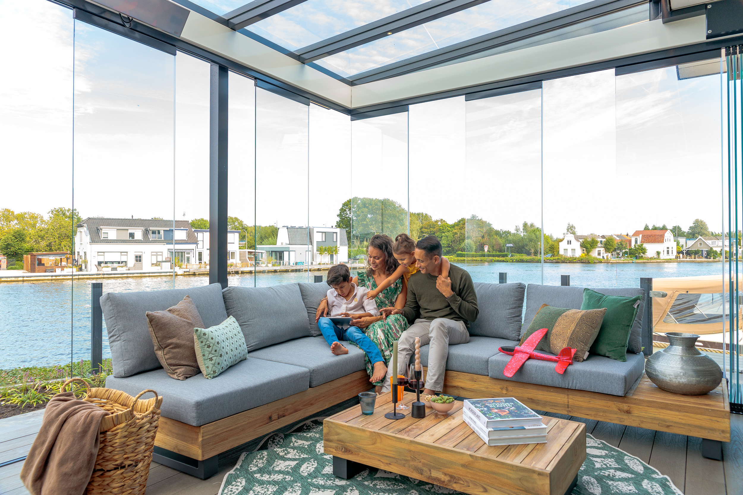 De zon schijnt, er waait een lichte bries en met een kopje koffie kijk je in je tuinkamer uit over je tuin. Af en toe komt er een vleugje voorbij van de zoete geur van de rozen uit de border. Het glazen wandsysteem staat een beetje open. In de tuinkamer is het aangenaam; je bent buiten, en toch ook binnen.