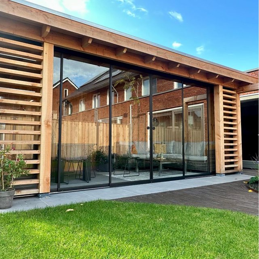 Als de herfstblaadjes beginnen te vallen of de winterkoude zijn intrede doet, kun je de schuifwanden sluiten. Zo houd je de warmte binnen en de kou buiten, terwijl je nog steeds kunt genieten van het prachtige uitzicht op je tuin. Dit maakt je overkapping of tuinkamer het hele jaar door een aantrekkelijke plek om te ontspannen, te werken of te socializen, ongeacht de weersomstandigheden.
