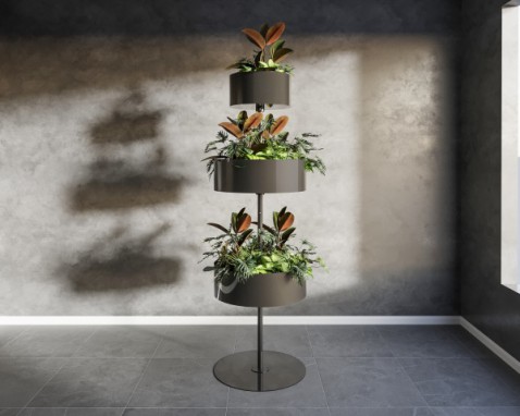In de tuin volgens de stijltrend ‘Cosmic Future’ zie je veel blauw- en paarstinten terug. Er wordt gespeeld met glans versus mat, bijvoorbeeld door toevoeging van een (mini)vijver. De waterspiegel weerkaatst het licht terwijl gazon en beplanting het absorberen. De gebruikte vormen zijn organisch, strak en soms zelfs een beetje futuristisch. Dat komt bijvoorbeeld tot uiting in een metallic plantenbak in de border. Materialen en meubels met een open structuur zorgen voor transparantie en geven de tuintrend een extra dimensie. De blauwe en paarse planten zoals lavendel (Lavendula), salie (Salvia) en ijzerhard (Verbena) geven de tuin in de schemering een ietwat mysterieuze en spannende sfeer. ‘Cosmic Future’ heeft een behaaglijke en frisse uitstraling, zowel letterlijk als figuurlijk. Groene hagen, struiken en bomen zorgen tijdens warme zomerdagen voor verkoeling. Het temperatuurverschil tussen een tuin vol tegels of een tuin vol planten is vaak zo’n 10 graden!