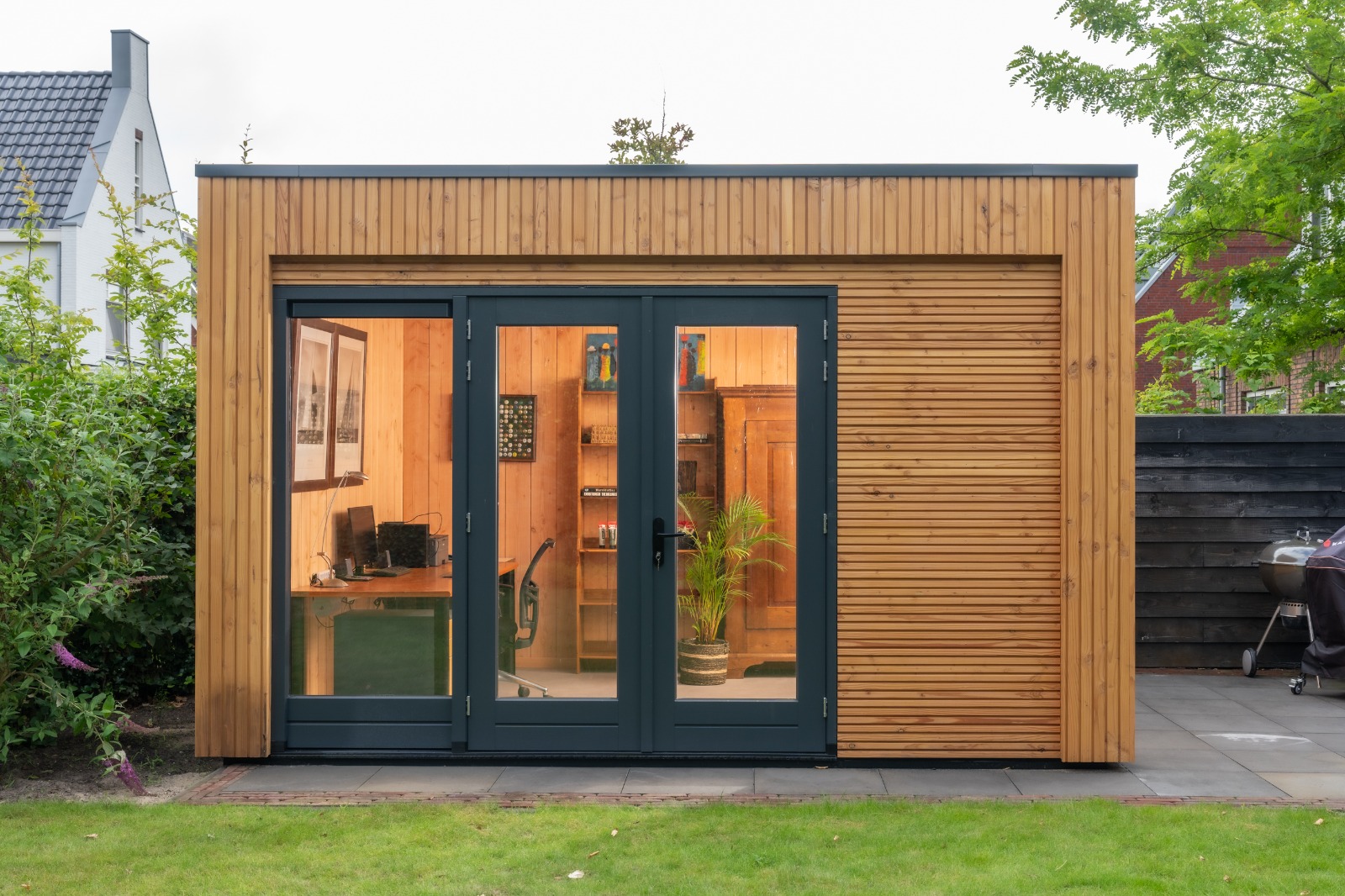 Wij ontwerpen prefab tuinkantoren in onze eigen werkplaats. Het grote voordeel van prefab is dat de tuinkantoren snel te realiseren zijn. We bouwen ze immers onder perfecte omstandigheden en u heeft slechts korte tijd 'overlast' in de tuin.