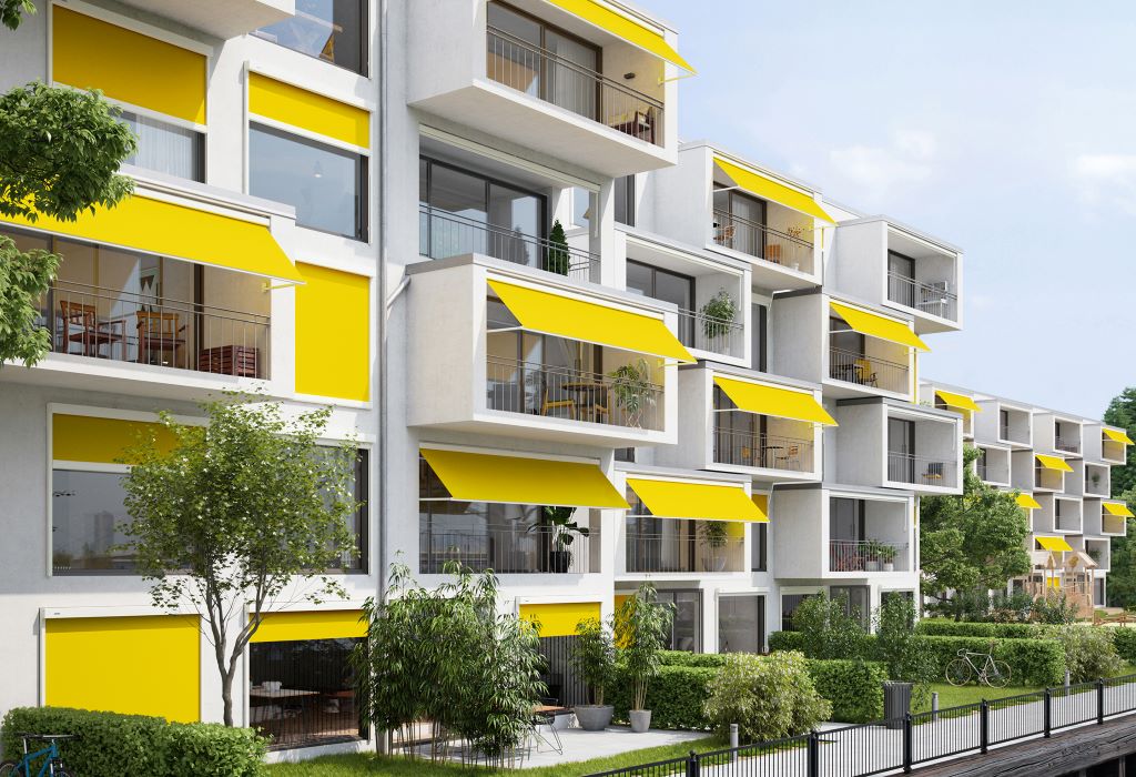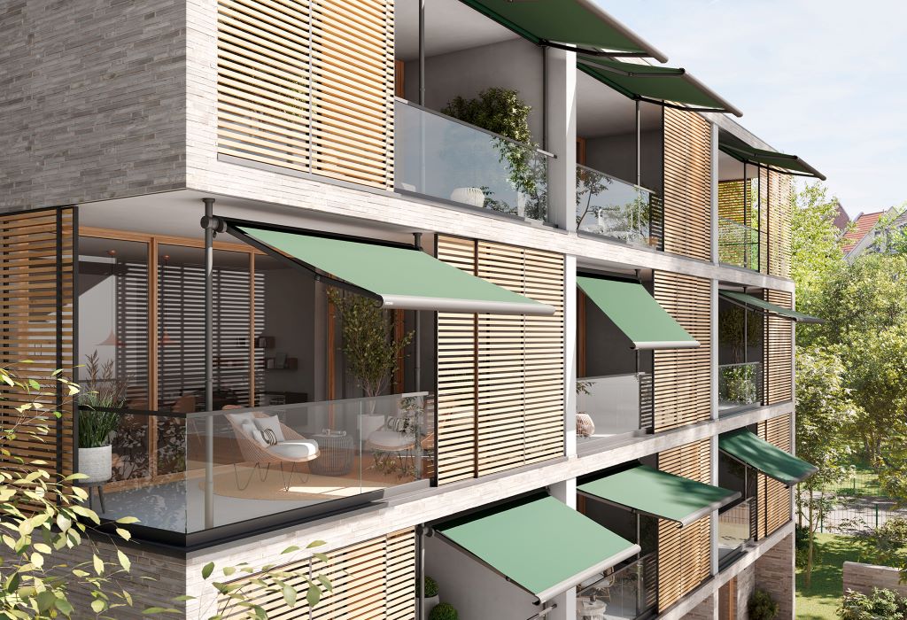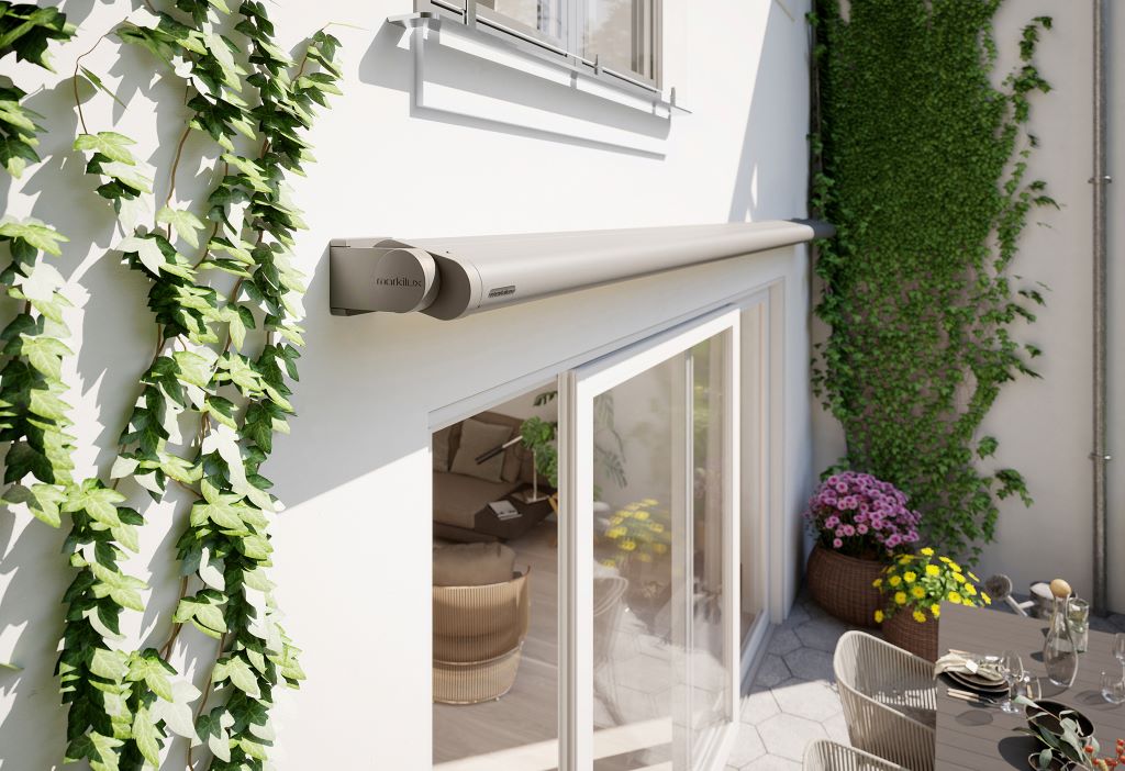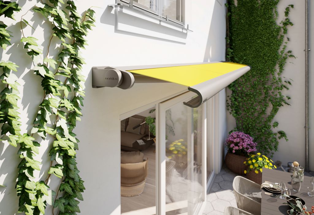 Het cassettescherm “markilux 900“ brengt modern design en slimme technologie naar het balkon en naar kleine terrassen. De zonwering kan aan de muur of het plafond worden gemonteerd.