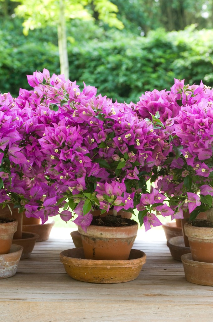 Wie wel eens op vakantie is geweest in mediterrane landen kent de Bougainvillea als bloeiende klimplant die tegen huisgevels groeit. Dat is een prachtig gezicht! In Nederland zet je de plant met paarse, roze, witte of gele bloemen in een pot op balkon of terras. Kies daar voor een zonnig plekje in de luwte. Geef regelmatig water en maandelijks wat plantenvoeding voor een lange en uitbundige bloei tot in het najaar. In de winter laat je de plant vorstvrij overwinteren. Voor een extra mediterrane sfeer zet je de Bougainvillea in terracotta potten.