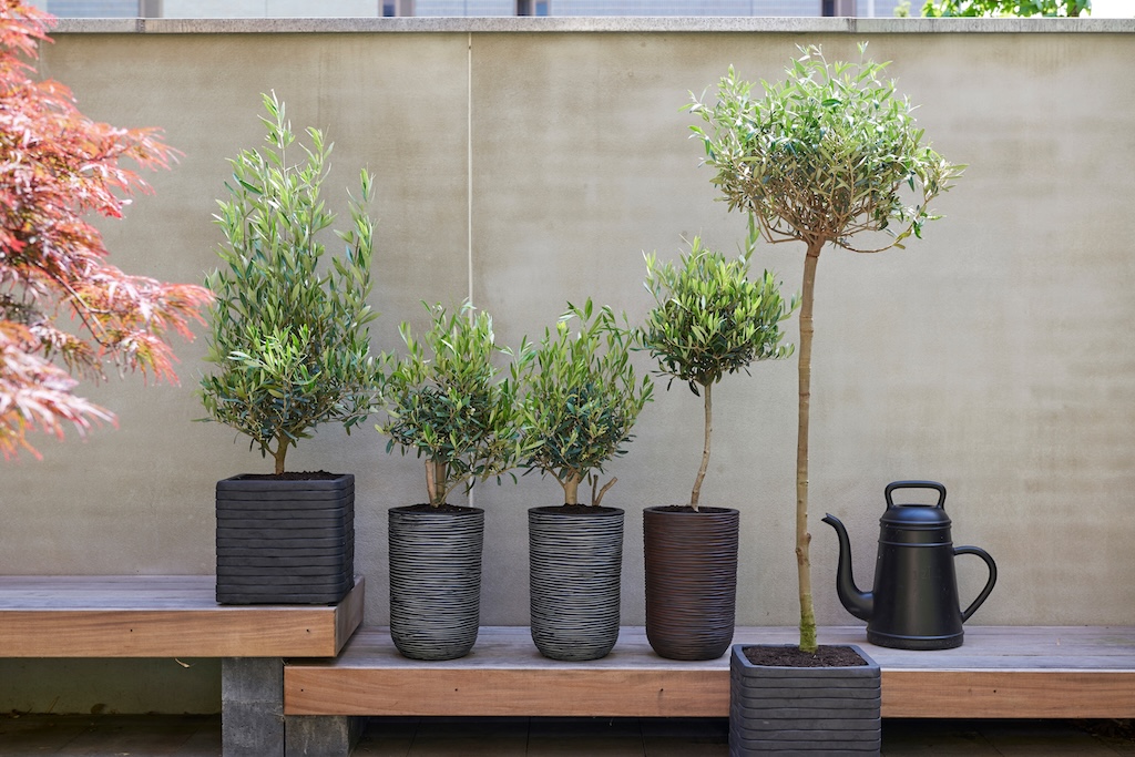 Hoe ouder de olijfboom (Olea europaea), hoe dikker en knoestiger de stam. In combinatie met de zilvergroene blaadjes brengt de plant onmiddellijk een mediterrane sfeer op het terras of balkon. In mei en juni verschijnen er crèmekleurige, geurende bloemen en daarna kunnen olijven volgen. Zodra ze makkelijk loslaten van de boom zijn ze eetbaar. De olijf kan zowel in de border als in potten worden gezet en staat graag op een warme, zonnige plek. Met name grote exemplaren kunnen Nederlandse winters prima overleven. Bij temperaturen onder de -5 graden Celsius is het wellicht beter om de plant te beschermen met vliesdoek of jute. Kleinere olijfbomen laat je vorstvrij overwinteren.