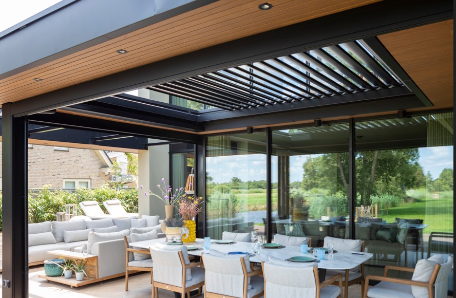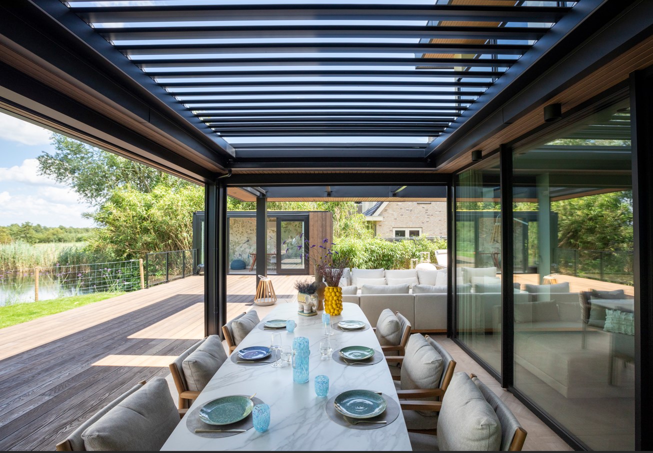 Binnen één dag een overdekt terras? Dat is zeker mogelijk. Afgelopen jaar is er bij zanger Jaap Reesema en zijn vrouw Kim Kötter een openschuifbaar lamellendak van Harol in het dak van het terras bij hun nieuwe woning geïnstalleerd. De installatie nam slechts enkele uren in beslag.