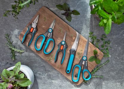 GARDENA presenteert een nieuw tuinmes en een collectie nieuwe scharen. Geknipt voor het oogsten van groenten, kruiden en bloemen of gebruik in het huishouden.