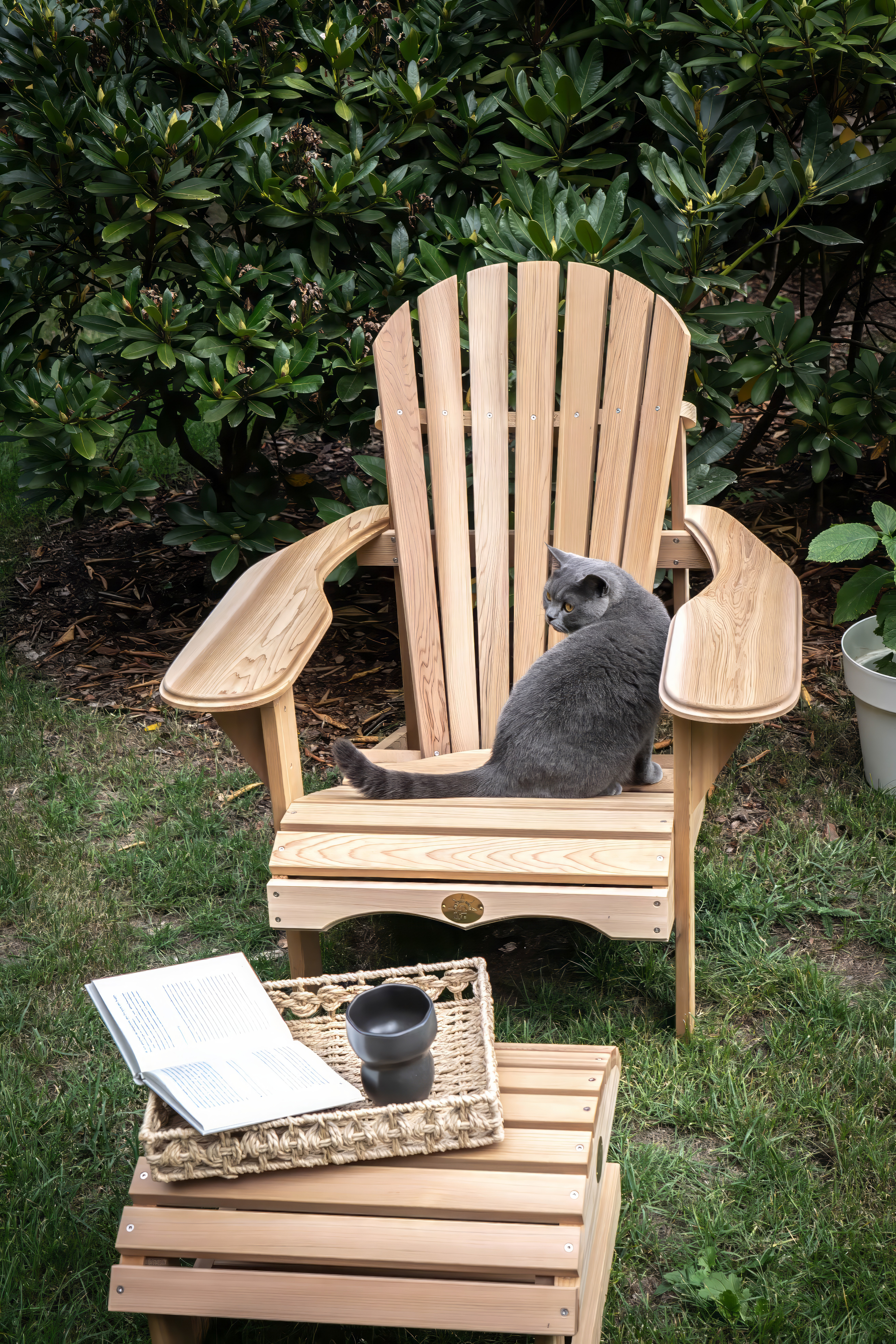 Wat de Original Bear Chair uniek maakt, is het materiaal: Canadees cederhout (Thuja plicata). Deze houtsoort staat bekend om zijn natuurlijke duurzaamheid, lichte gewicht en weerbestendige eigenschappen. Ideaal dus voor tuinmeubelen die alle seizoenen buiten kunnen blijven staan. De robuuste stoel weegt amper 10 kg en is daardoor eenvoudig te verplaatsen. Op de brede armleuningen (18 cm) kun je eenvoudig een drankje of een boek kwijt!