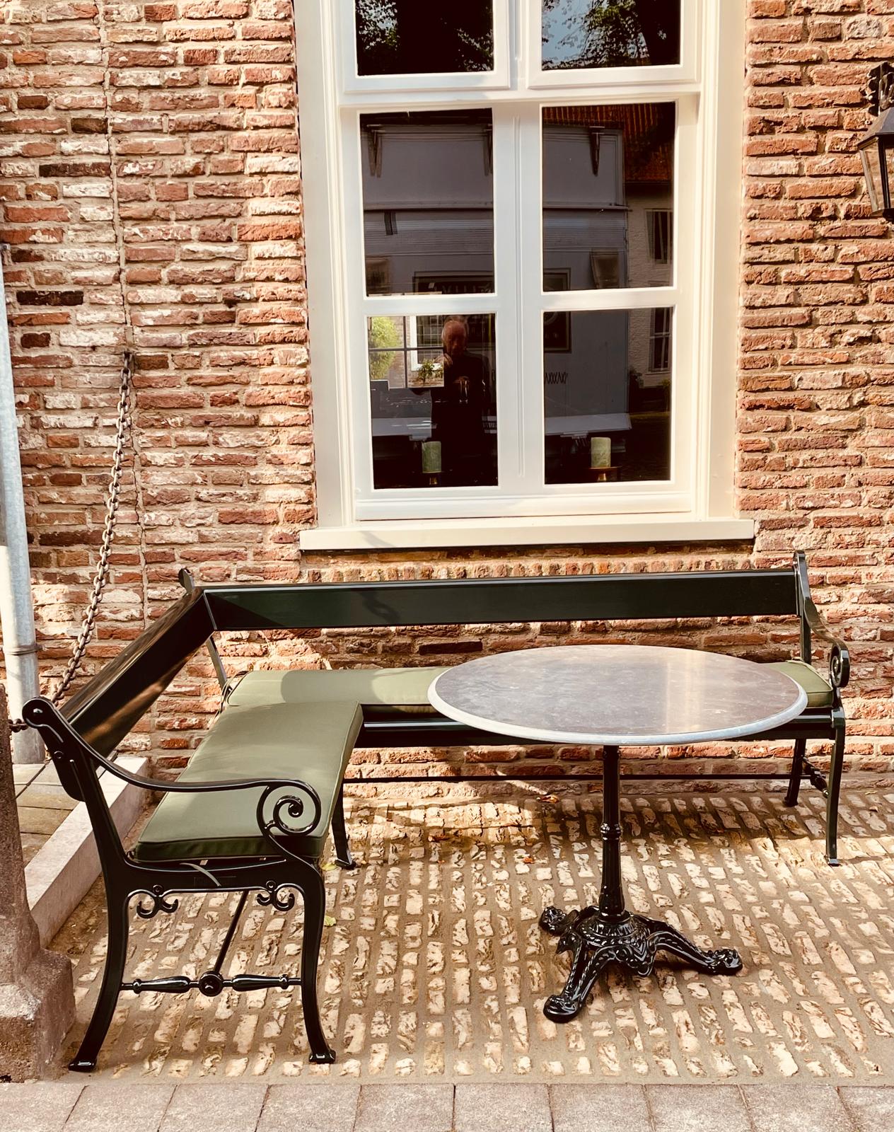 Met een exclusieve hoekbank Zeus van Gardeluxe creëer je veel zitplekken. Een prachtige tuinbank die uw terras een luxe uitstraling geeft. Mooi gecombineerd met de gietijzeren tuintafel Castor met een Belgisch hardstenen tafelblad met papegaaienrand afwerking of met een tuintafeltje Pollux.