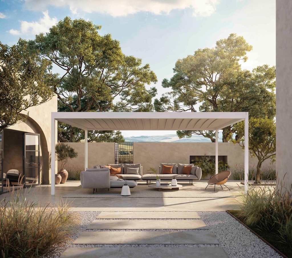 - Door de klimaatveranderingen moeten bedrijven steeds meer schakelen om hun producten aan te passen aan extreme hitte of regenval. Het Italiaanse Corradi maakt overdekte buitenruimtes die bij zon volledig dichtschuiven of bij regen net het omgekeerde doen. Hun product ‘Alba Butterfly’ is ontwikkeld om zes keer meer regen te kunnen verdragen dan de Europese richtlijnen vereisen. Ook het gebruikte materiaal, ‘Opatex Cool’ – een thermo-reflector composiet black-out textiel – reflecteert veel meer zonlicht, zodat het eronder frisser blijft. Meer info: corradi.eu