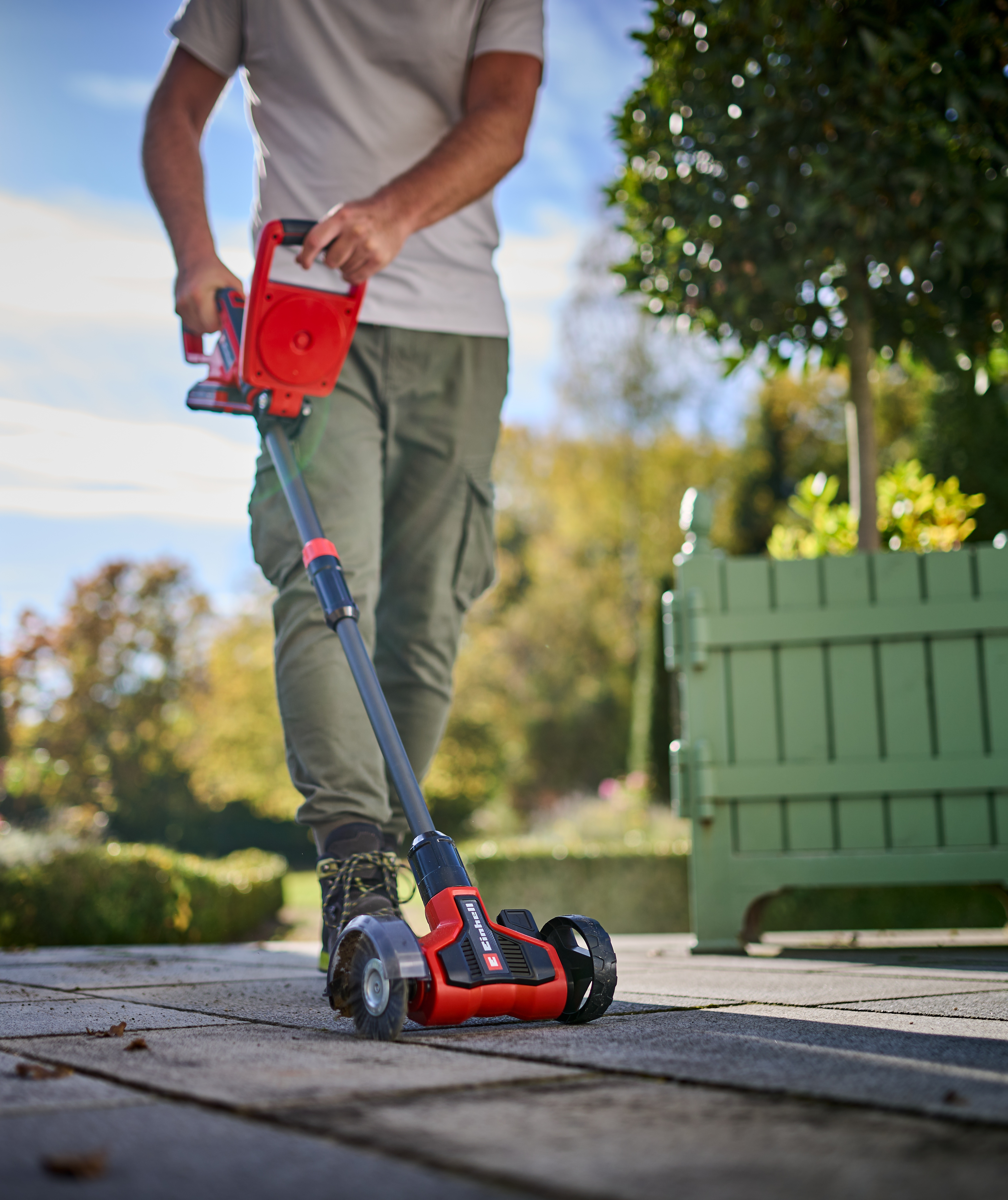 Onkruid tussen de tegels: bijna iedereen heeft er last van. Het ziet er slordig uit en is lastig te verwijderen. Gif wil je liever niet gebruiken, een brander is onhandig en met de hand borstelen kost veel tijd en kracht. Het Duitse kwaliteitsmerk Einhell komt daarom met een slimme oplossing: de voegenreiniger GE-CC 18/110 Li E Solo. Het is een krachtige en gebruiksvriendelijke onkruidborstel die werkt op accu. Stoep, oprit, terras en tuinpad zijn snel weer netjes.