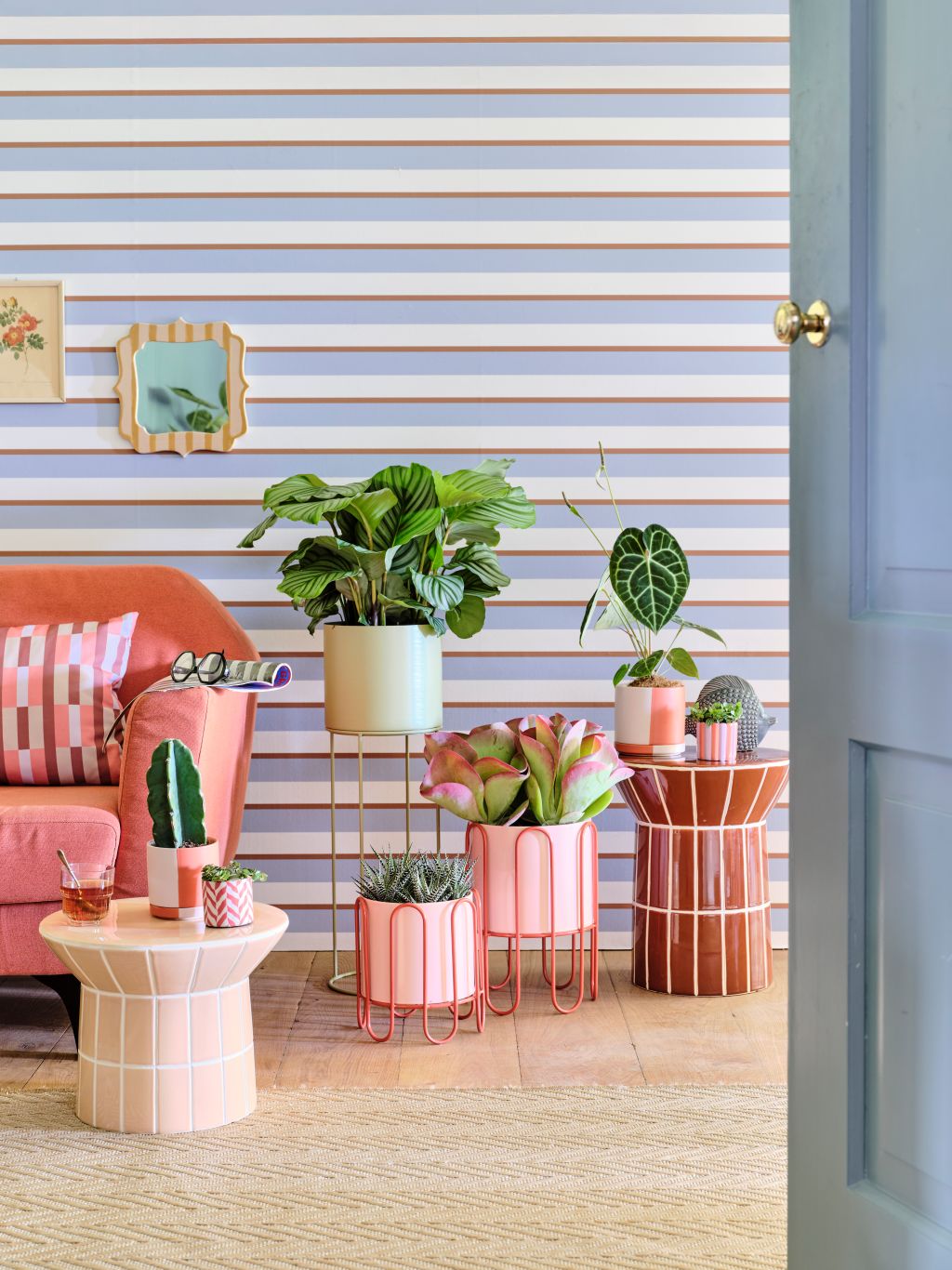 Fris, vertrouwd en een vleugje nostalgie: Coastal Classics brengt het ontspannen gevoel van een zomerdag aan zee naar binnen. Grafische strepen en ruiten vormen de rode draad binnen deze trend, gecombineerd met natuurlijke materialen zoals licht hout, katoen en linnen. Accessoires zoals handgeschilderde potten, manden van natuurlijk geweven materiaal en schelpvormige vazen verwijzen subtiel naar het kustleven. Het kleurenpalet is zonnig en verrassend; van grijsblauw, zand en oester tot accenten in lila, oceaanblauw en een warme honingtoon. Deze onverwachte mix maakt Coastal Classics tijdloos én eigenwijs. Een trend die rust in je interieur brengt, maar met genoeg karakter om de lente fris te laten beginnen.