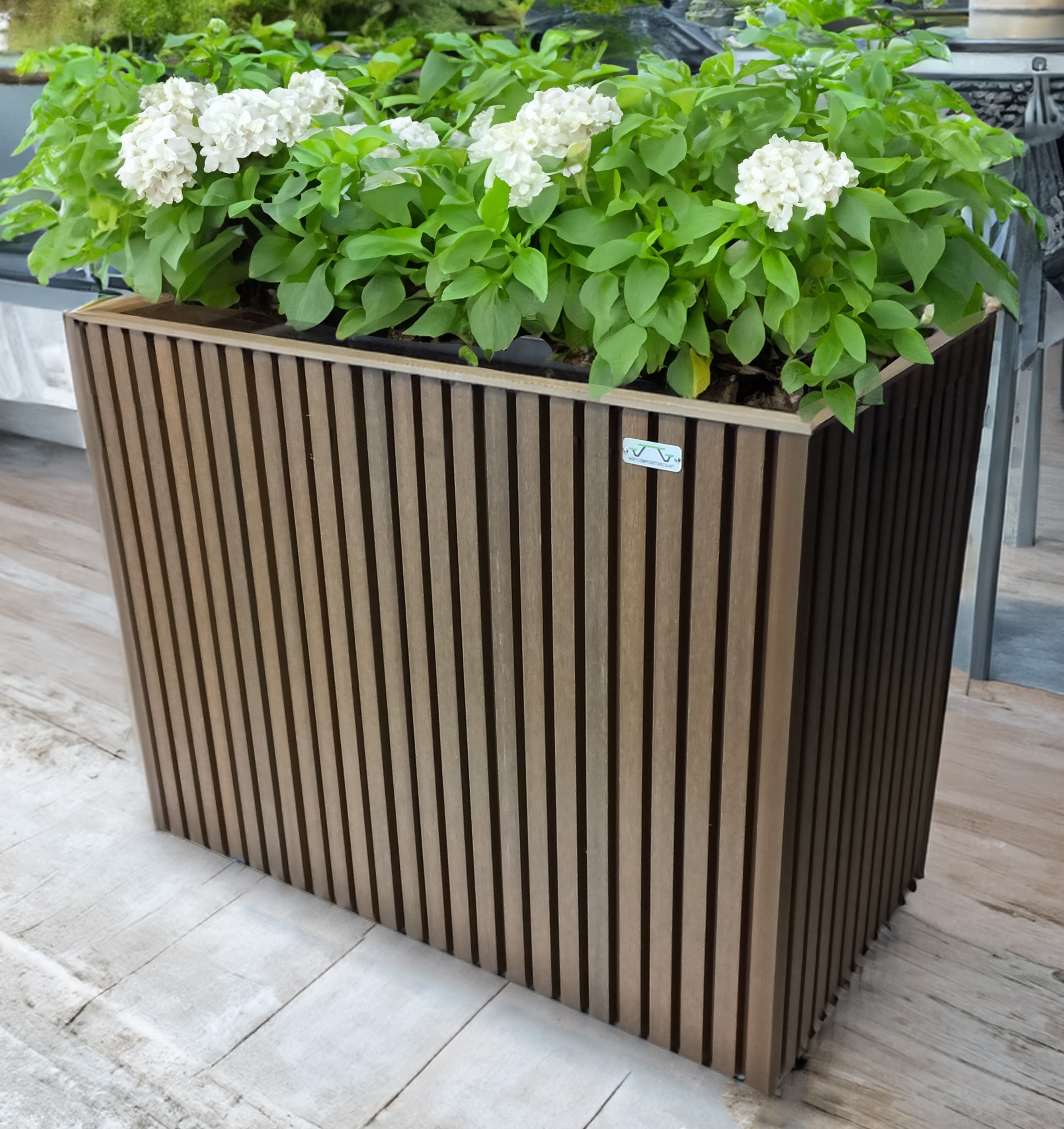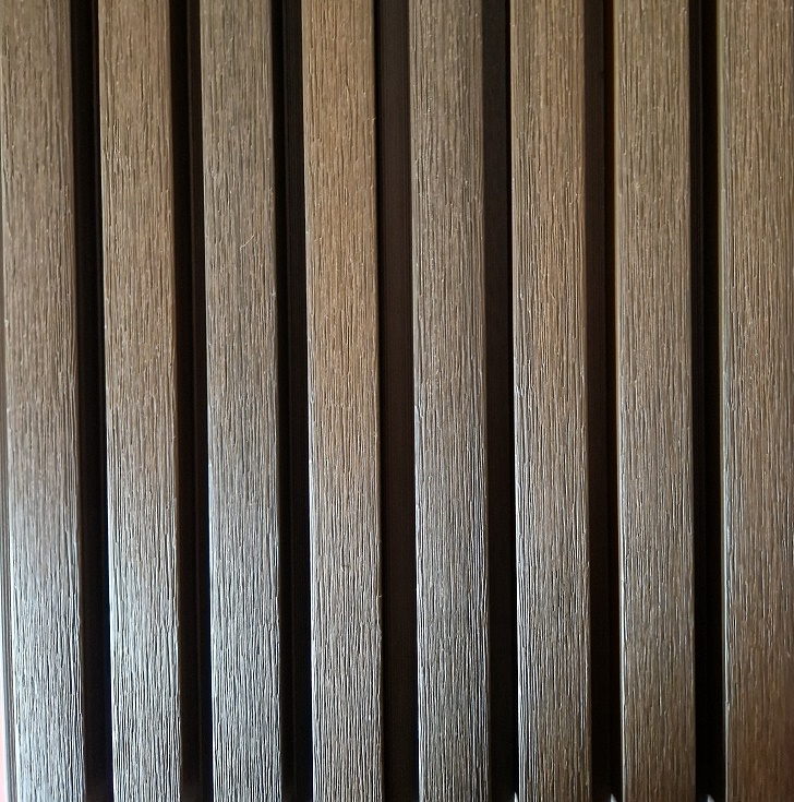 Moderne wandpanelen voor buiten. Rhombus planken gemaakt van gerecyceld kunststof met bamboe vezels en co-extrusion top laag. Kleur en vormvast. Geen onderoud nodig.