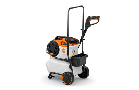 Voor eigenaars van grotere percelen en voor conciërgediensten is de nieuwe REA 100 PLUS van STIHL het ideale toestel voor reinigingsklussen rond het huis en in de tuin. De lichte, draagbare hogedrukreiniger uit het AP accusysteem maakt alles snel proper met een maximale druk van 150 bar - dankzij de accu zelfs op locaties zonder stopcontact. Een waterkraan in de buurt is evenmin vereist, want het compacte toestel werkt niet alleen met een standaard wateraansluiting, maar ook in aanzuigmodus, zoals met water uit een regenton. Optioneel is een transportwagen met afneembare watertank verkrijgbaar. De gewenste waterdruk stel je traploos in en met de standaard 3-in-1-sproeikop schakel je snel tussen roterende straal, vlakstraal en straal met reinigingsmiddel zonder van sproeikop te moeten wisselen. Dankzij het slimme opbergsysteem met geïntegreerde slanghaspel en houders zijn de accessoires steeds binnen handbereik. Na gebruik kan de compacte reiniger bovendien compact worden opgeborgen. De energie komt van een krachtige 36 V lithium-ion-accu uit het STIHL AP accusysteem, speciaal ontwikkeld voor professionele toepassingen. Voor dit toestel wordt de AP 300 S accu aanbevolen.