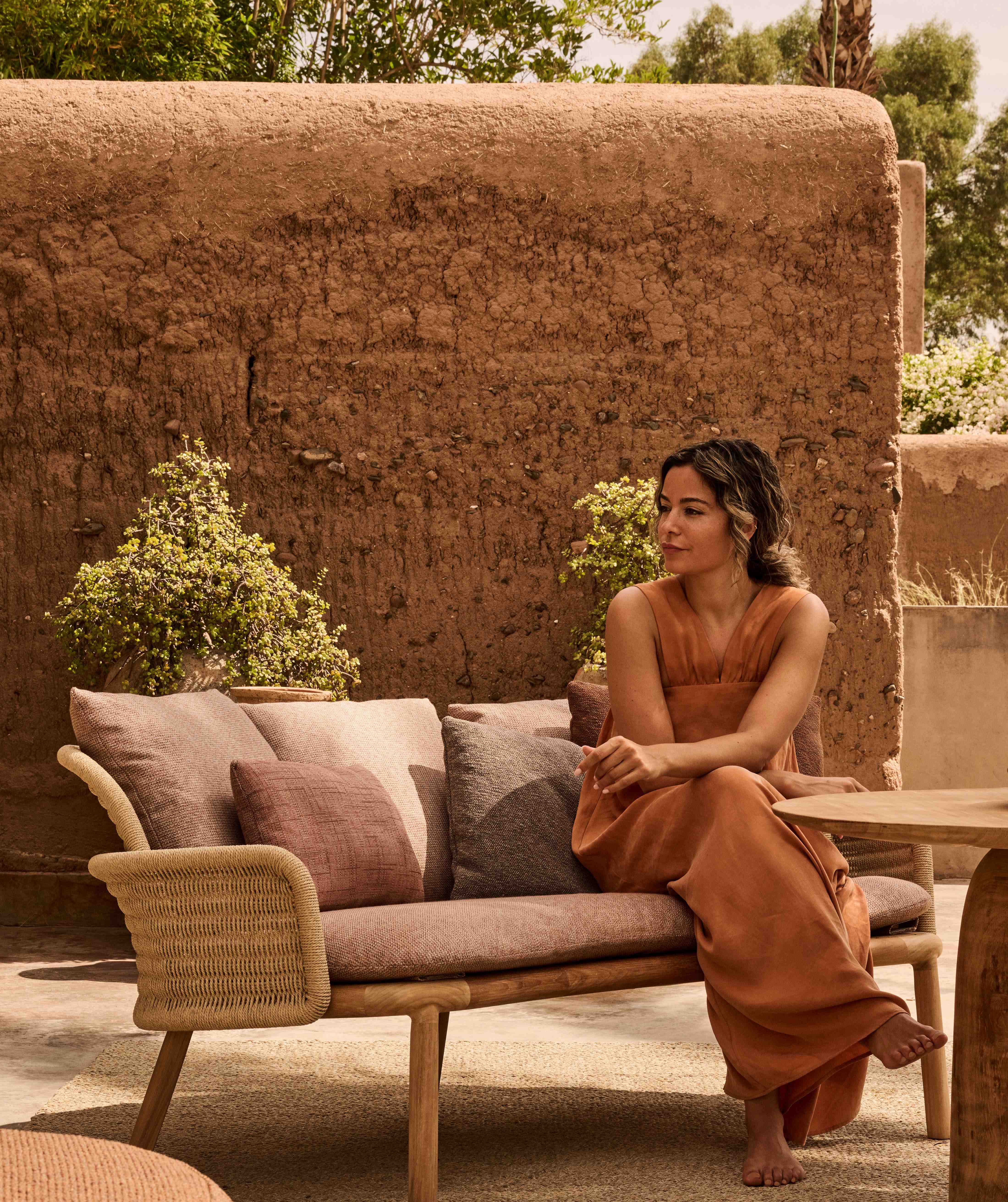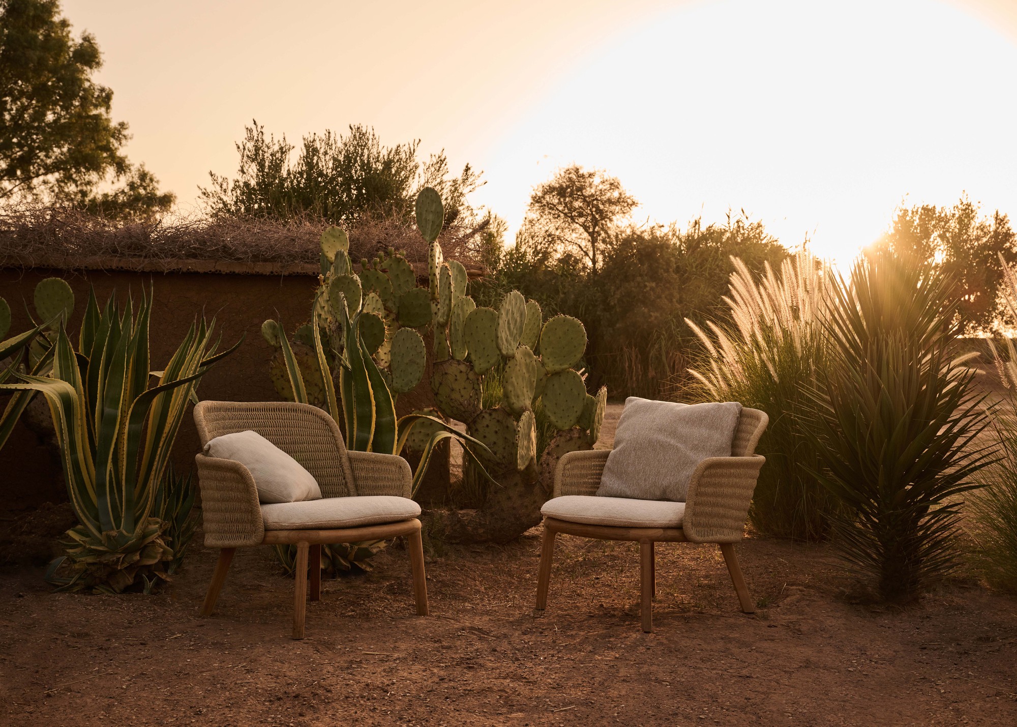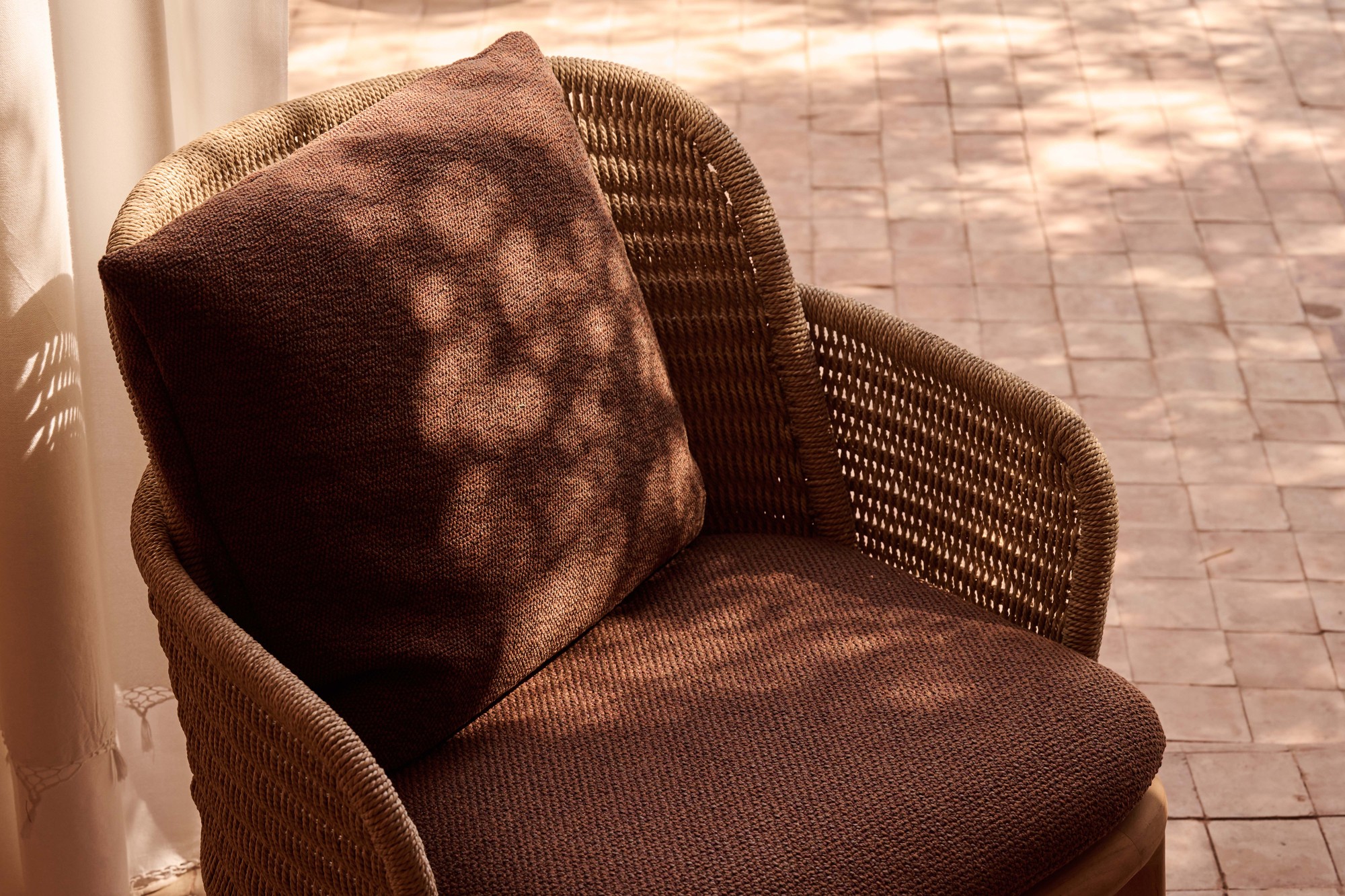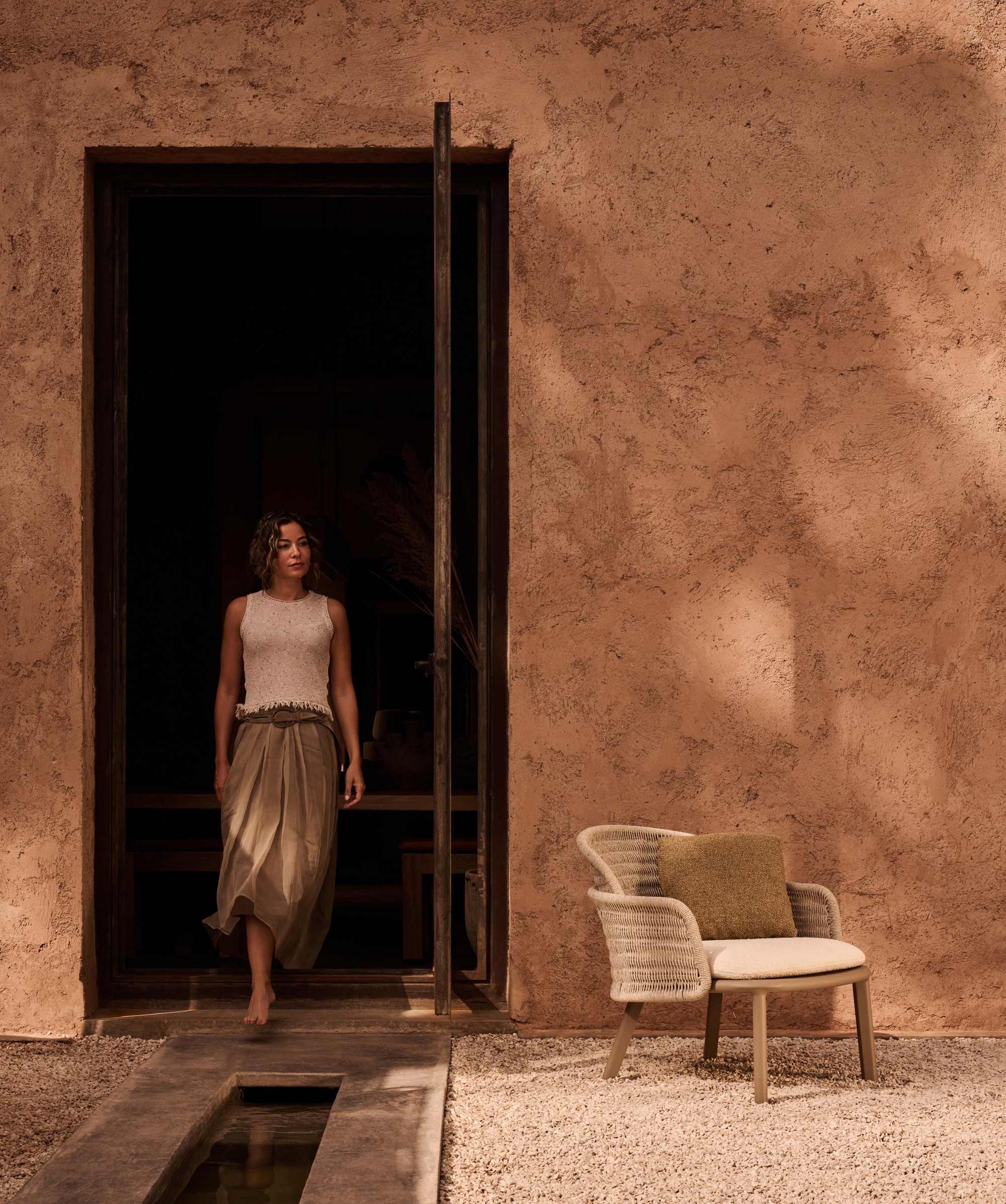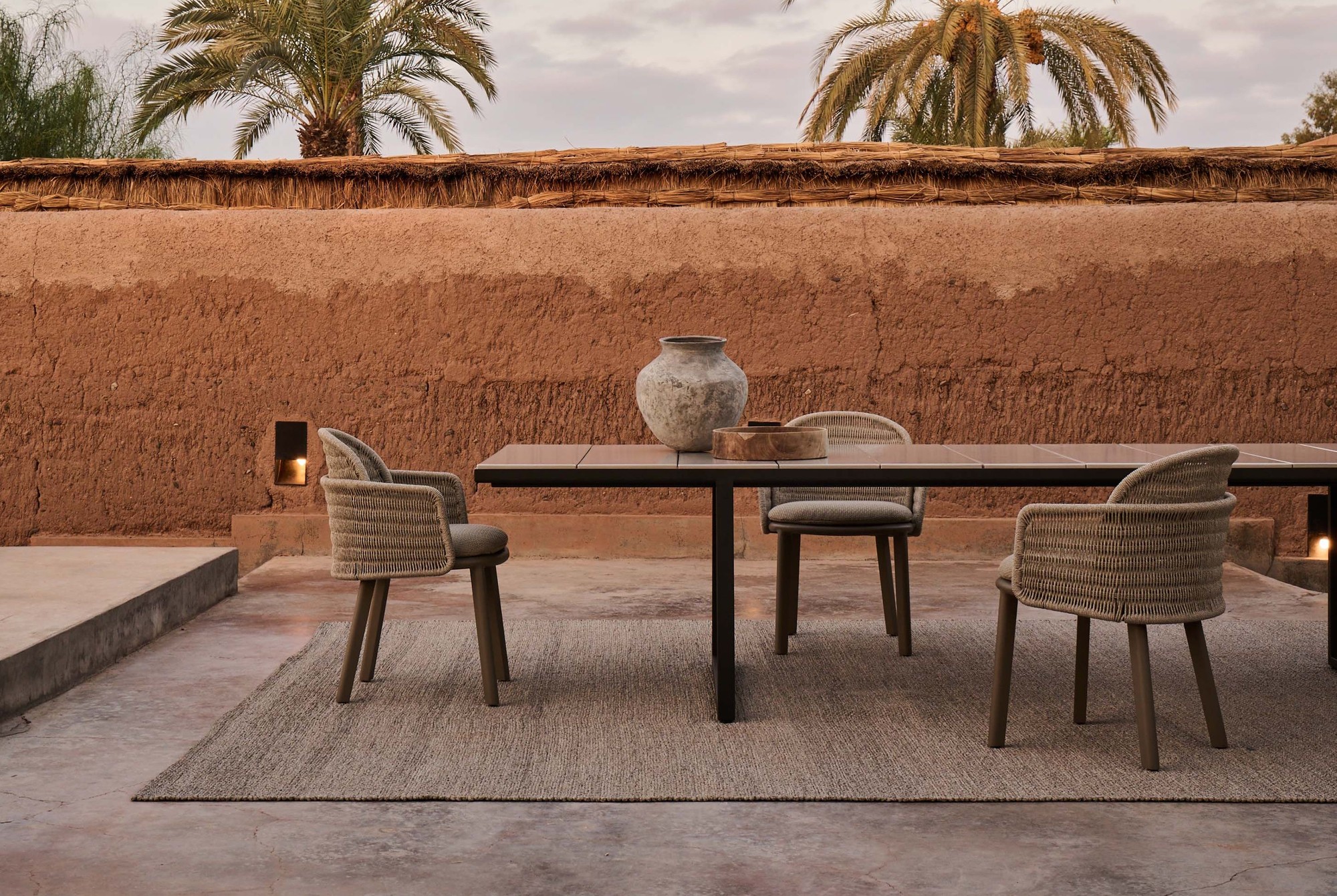 Typerend voor deze collectie van Christophe Delcourt is de perfecte beheersing van materialen en rondingen. Suro staat voor stevig zitmeubilair uit teakhout of aluminium in perfecte symbiose met de bekleding van gevlochten touw.