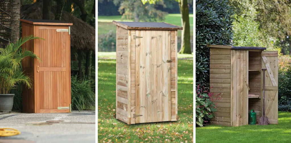 Wie liever de warme, natuurlijke uitstraling van hout in de tuin behoudt, kan kiezen voor een houten tuinkast van merken als Woodvision, Tuindeco of Lutrabox. Elk merk heeft zijn eigen karakter en toepassing.