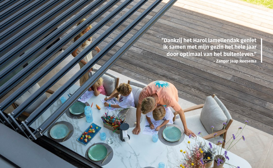 Ben je op zoek naar een manier om zo veel mogelijk buiten te kunnen genieten van je tuin? En wil je tegelijk een gezellig én sfeervol terras creëren, maar wel zelf de lichtinval kunnen regelen? Dan is een terrasoverkapping met lamellen de ideale oplossing. Ook zanger Jaap Reesema en zijn vrouw Kim Kötter kozen voor een op maat gemaakt lamellendak bij hun nieuwe woning. Deze moderne en veelzijdige toevoeging aan de woning biedt tal van voordelen én ultieme flexibiliteit. Dankzij het lamellendak genieten Jaap en Kim het hele jaar door volop van hun tuin samen met de kinderen.