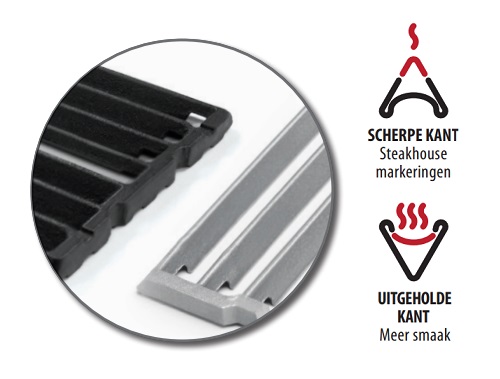 De RVS of gietijzeren braadroosters zijn speciaal ontworpen om warmte vast te houden. De roosters hebben twee verschillende kanten. Eén kant is scherp waarmee je mooie steakhouse markeringen kunt schroeien. De andere kant van het rooster is gegroefd, waardoor het vlees gegrild wordt in zijn eigen sappen. Deze roosters zijn eenvoudig te reinigen en gaan zeer lang mee.