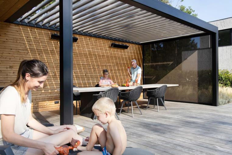 Wat hebben terrasoverkappingen nu te maken met outdoor living? Het antwoord hierop is simpel: terrasoverkappingen voorzien je van alle nodige comfort om optimaal buiten te leven. Terrasoverkappingen werken zonwerend, maar bieden ook bescherming tegen wind en een spatje regen.