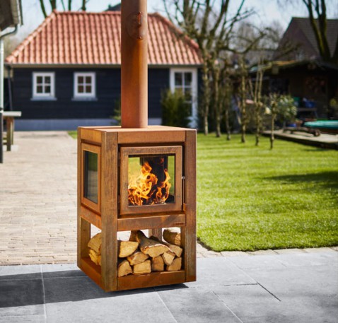 Ontdek robuuste Cortenstaal tuinhaarden én slimme houtopslagoplossingen die warmte én design samenbrengen in jouw tuinomgeving.