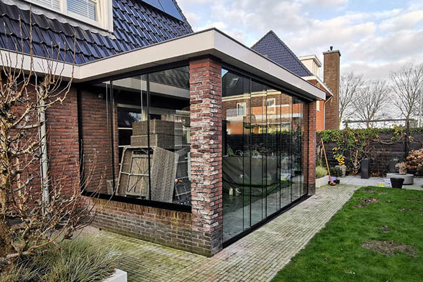 Het voordeel van glazen schuifwanden van Luxxout zijn de meelopende wanden. Deze kunnen op ieder moment geopend en gesloten worden. Zo gebruik je je tuinhuis zowel tijdens het voorjaar als het najaar. Juist in de herfst en winter is een tuinkamer ontzettend idyllisch. De glazen schuifwanden zijn voorzien van een minimale rand. Enkel de aluminium profielen aan de boven- en onderkant zijn zichtbaar. De wand bestaat voornamelijk uit glas en dat creëert een moderne uitstraling. Je kiest zelf de kleur van de profielen. Kies voor zwart, antraciet, crème of wit. De keuze is reuze en daarom zijn we er zo gek op (en laat maatwerk nu net onze specialiteit zijn)!