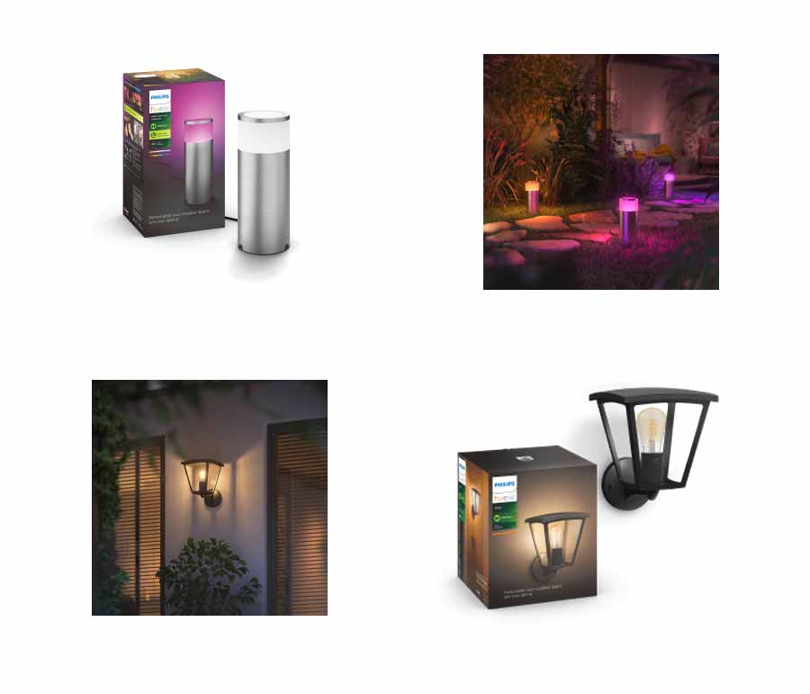 De Philips Hue slimme lampen voor buiten worden geleverd met alle voordelen van het Philips Hue-systeem en zijn bestand tegen alle weersomstandigheden. De lampen zijn dimbaar om een perfecte sfeer te creëren en kunnen worden bediend via de Philips Hue-app, afstandsbediening, spraak of outdoor bewegingssensor. Sluit de slimme buitenverlichting aan op de Philips Hue Bridge en profiteer van slimme automatiseringen: stel de verlichting zo in dat ze aangaat wanneer je in de buurt bent of automatiseer de verlichting om je aanwezigheid te simuleren wanneer je weg bent.