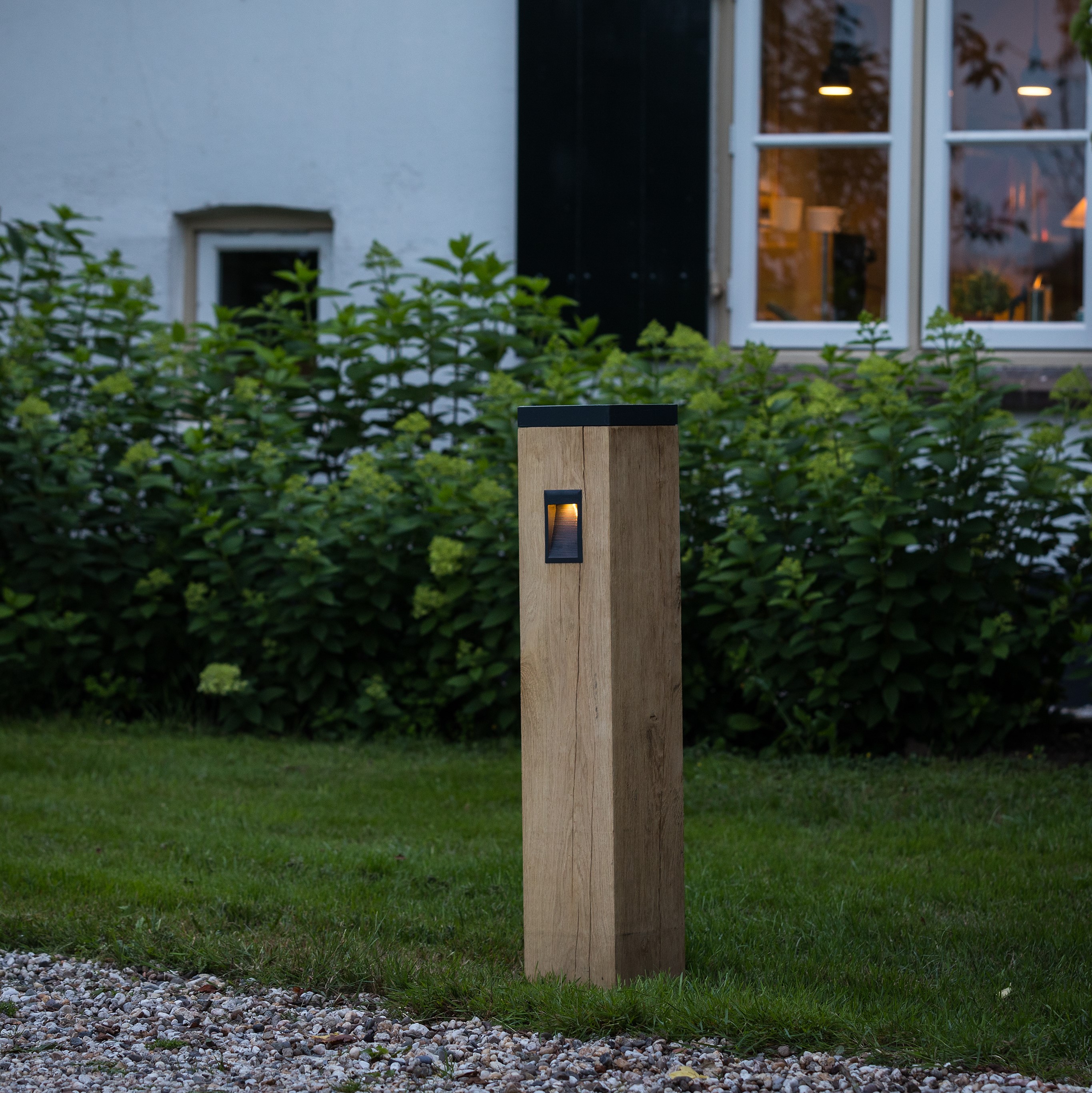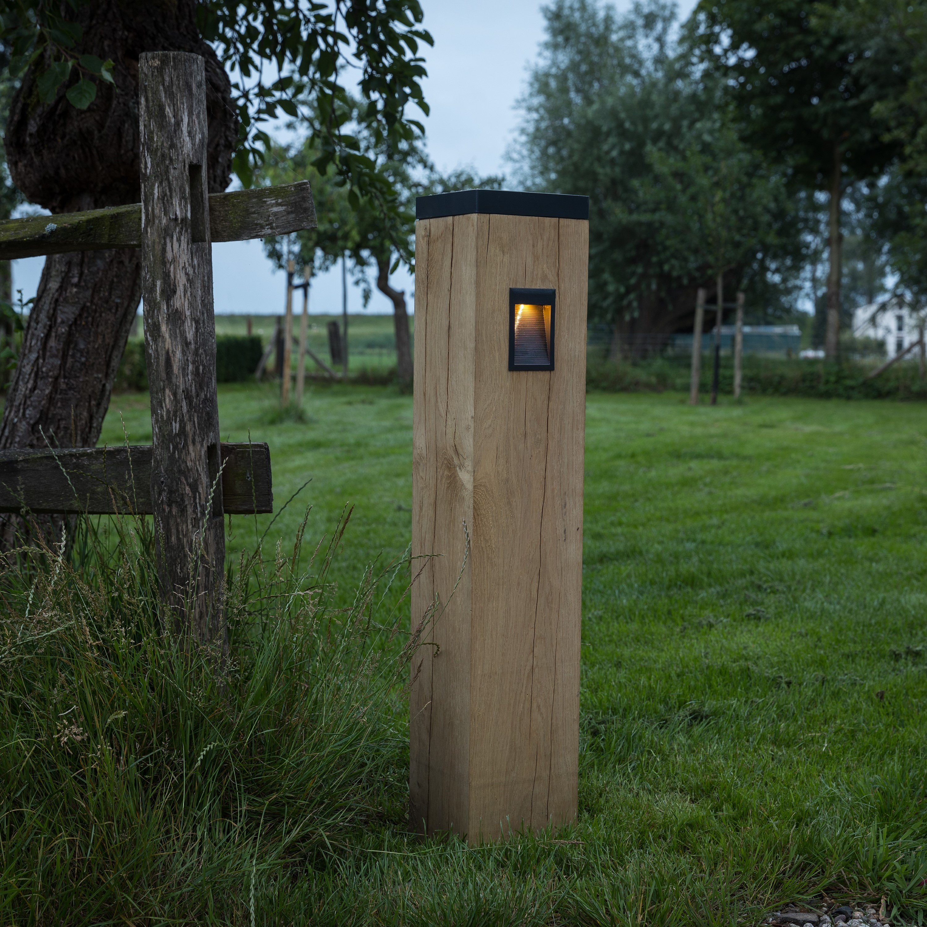 Buitenlamp op zonne-energie gemaakt uit massief hout