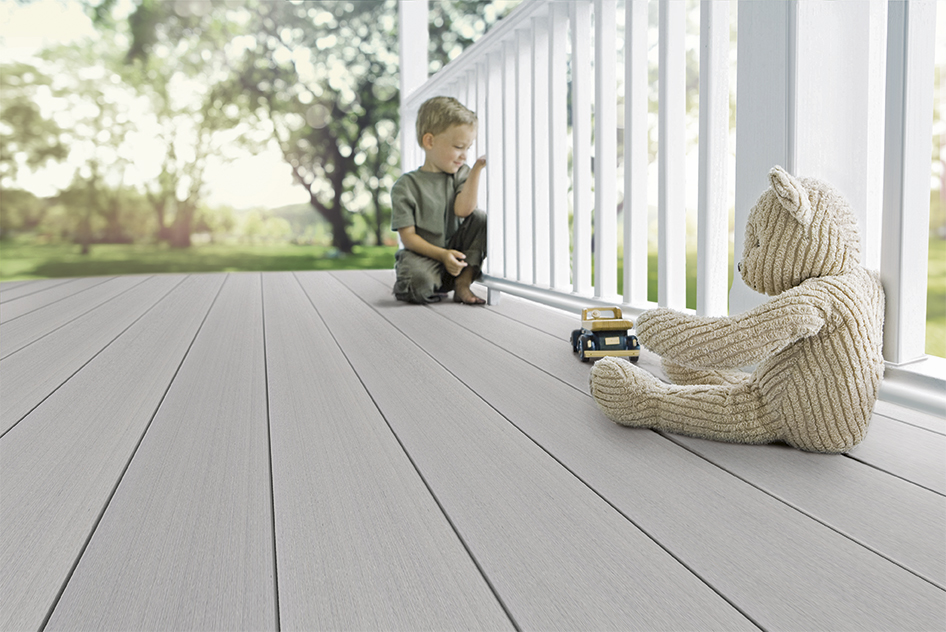 De terrasplank Majestic van Deceuninck bestaat uit een kern van Twinson, een PEFC-gecertificeerd houtcomposiet. Twinson combineert alle voordelen van kunststof (slipvastheid, splinter- en rotvrijheid, onderhoudsgemak, uv-bestendigheid…) terwijl het er uitziet als 100% puur hout. De milieuvriendelijke terrasplanken zijn aan het einde van hun levensduur bovendien voor 100% recyclebaar en het duurzame materiaal kan zonder kwaliteitsverlies opnieuw worden gebruikt. De Majestic-terrasplanken zijn beschikbaar in de kleuren steengrijs, klei, asgrijze eik en iriserende eik waardoor zij in elk type architectuur of landschap tot hun recht komen. De uitvoeringen in eik hebben nog een extra bijzonderheid: aan beide zijden beschikken zij over een vlamtekening die van plank tot plank varieert, waardoor iedere terrasplank uniek is. Omdat de plank aan beide zijden kan worden toegepast, kan telkens worden gekozen uit twee typen structuur.