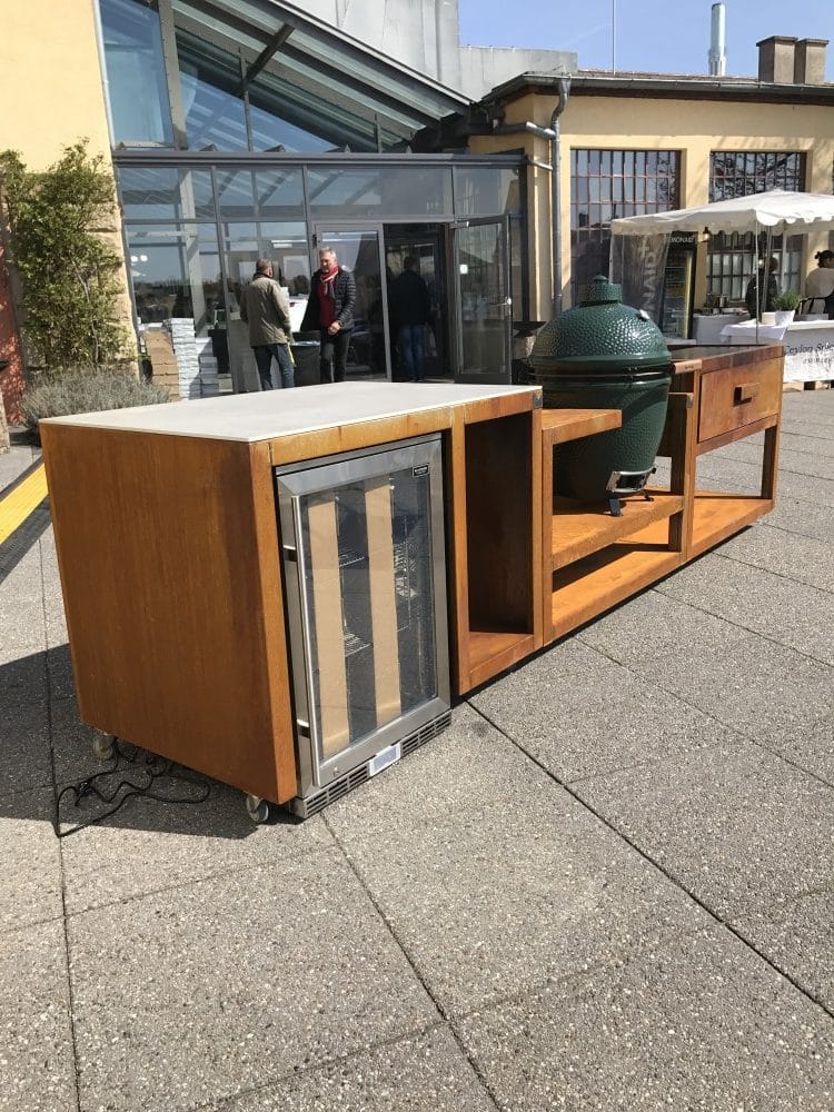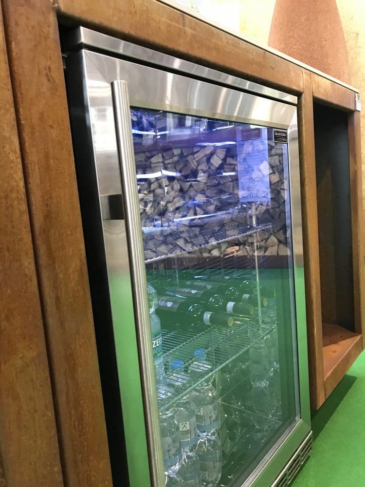 is speciaal ontworpen om een koelkast eronder te plaatsen. In de foto's is gebruik gemaakt van de Blastcool Freeze, een waterdichte koelkast speciaal voor buitengebruik, met een inbouw hoogte van 86cm.