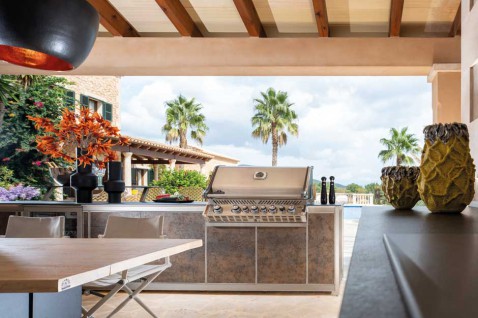 Lang natafelen in de buitenkeuken? Een overkapping zorgt voor beschutting en extra warmte. Maak het nog gezelliger door twee hanglampen voor buiten boven de tuintafel te hangen, zoals de Roots No. 1 (€ 169,-) of Monroe No. 1 (€ 139,95).