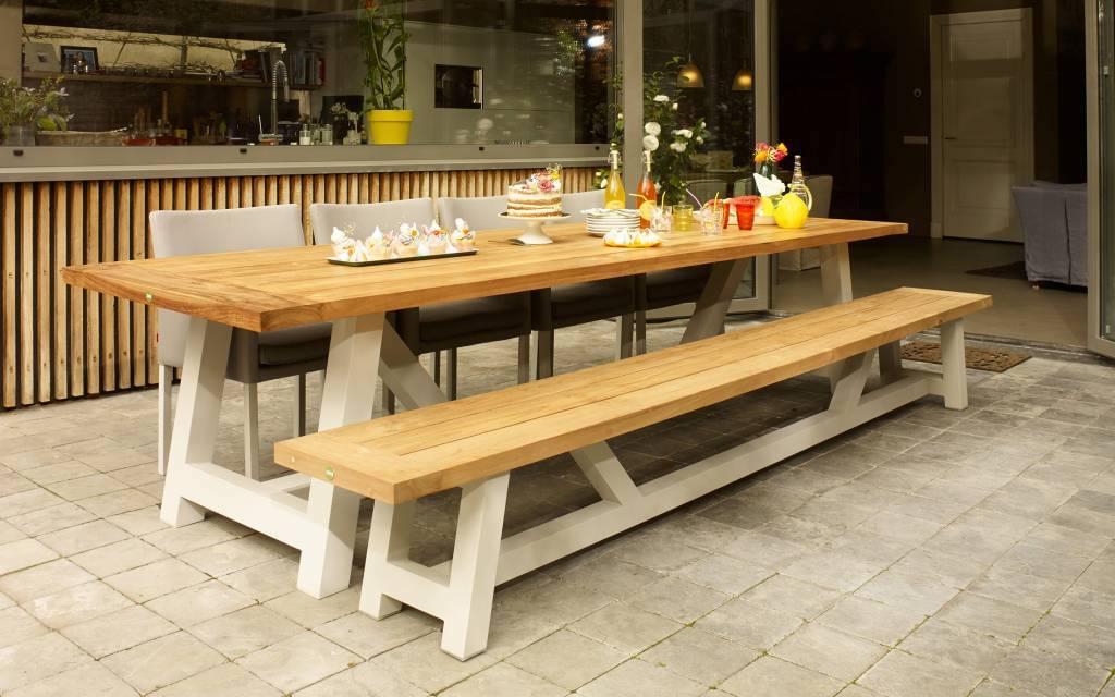 Je maakt het af met wat fijne stoelen eromheen en een vers veldboeket erop.