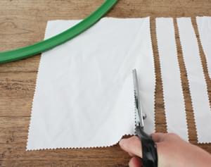 - Knip evenzoveel stroken van de stof van 2 tot 3 centimeter breed en 15 tot 20 centimeter lang.