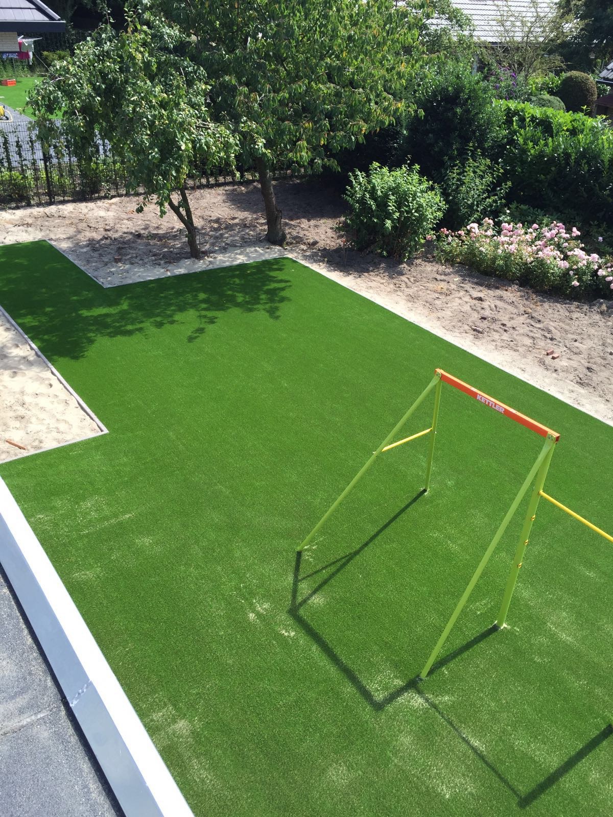 Het kunstgras is tegenwoordig niet meer weg te denken in een tuin. Het droogd snel op en de kinderen kunnen weer snel buiten om, verder, te spelen.