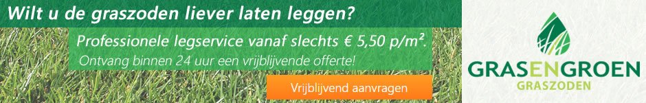 Gras en Groen Graszoden is gevestigd in ‘s-Hertogenbosch en heeft een legservice waarmee zij actief zijn in Nederland en België. Dagelijks kunt u graszoden vers afhalen (wel even vooraf reserveren). In samenwerking met de graszodenkwekerij hebben zij ook een bezorgservice waarbij aantallen groter dan 30 m² thuisbezorgd kunnen worden. Mocht u zich, bij het lezen van alle werkzaamheden, bedenken en het niet meer zelf uit willen voeren. Binnen 14 dagen kan Gras en Groen Graszoden de graszoden bij u komen leggen. U ontvangt zelfs nog maanden garantie op de uitgevoerde werkzaamheden.