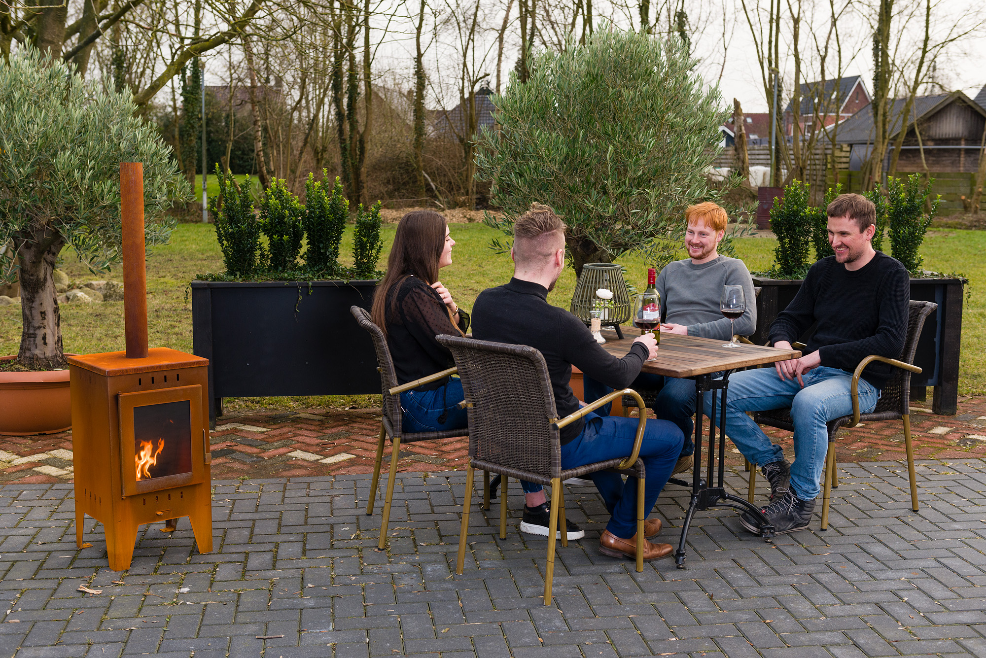 Prachtige buitenhaard welke gecombineerd is met een pizzaoven. De prachtige houtkachel vlammen zijn afkomstig van pellets. De houtpellets branden schoon en nagenoeg zonder zichtbare rook. Dit minimaliseerd de overlast naar je buren en zo kun je met een gerust hart genieten van het vuur en een heerlijke pizza nuttigen.