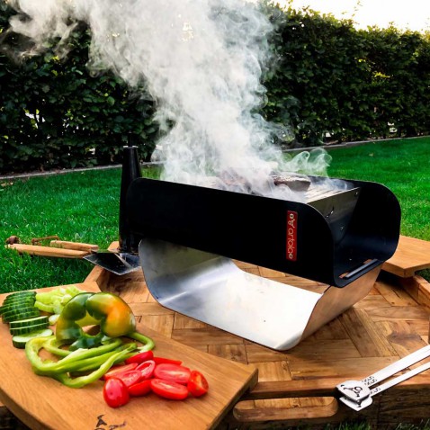 Het Prairie kampvuur van Maandag meubels is een schot in de roos. De vorm geeft aan waar je houtblokken goed liggen. Het kampvuur staat op pootjes, zodat je gemaaide gazon fris groen blijft. Hij is gemaakt van cortenstaal en blijft dus lang goed onder de sterrenhemel.