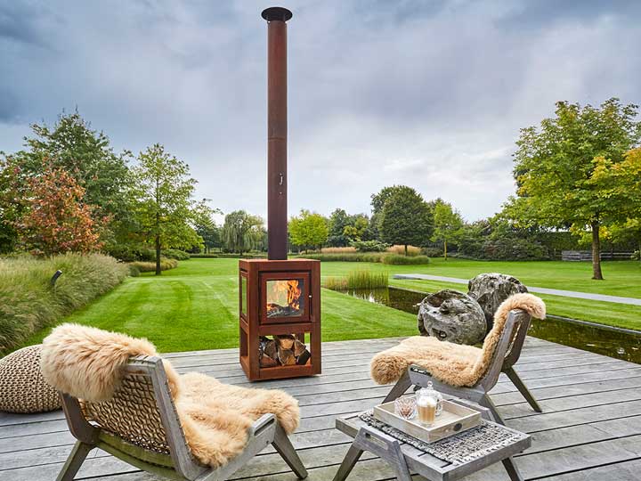 Ja, je geniet graag van de mooie dingen in het leven en de gezelligheid van een mooi brandend vuur hoort daar bij. Tegelijkertijd ga je bewust om met je omgeving. Je wilt niet dat jouw gezellige vuurtje een bron van ergernis is voor je buren. Je stookt milieubewust: als het weer het toelaat, met goed hout en het vuur op de juiste manier gemaakt. Dan wil je ook een terraskachel die maximaal bijdraagt aan de gezelligheid en tegelijkertijd zo schoon en effectief mogelijk stookt. RENY biedt je een uitgebreid assortiment aan terraskachels waarmee je verantwoord kunt stoken. Bijvoorbeeld de Quaruba. De Quaruba van RENY is een robuuste houtkachel van Cor-Ten staal met een stoere industriële uitstraling voor gebruik buiten. Deze kubusvormige terraskachel heeft glaspanelen rondom zodat iedereen rondom de kachel kan genieten van de dansende vlammen. Met de verstelbare klep in de schoorsteen regel je moeiteloos de verbranding zodat er zo efficiënt mogelijk worden gestookt en de uitstoot van rook en roet minimaal is. Met een terraskachel creëert je buiten een gezellige plek door de behaaglijke warmte en het sfeervolle vuur. Zo kun je ook ’s avonds laat als het wat kouder wordt én in het voor- en najaar genieten van het leven buiten.
