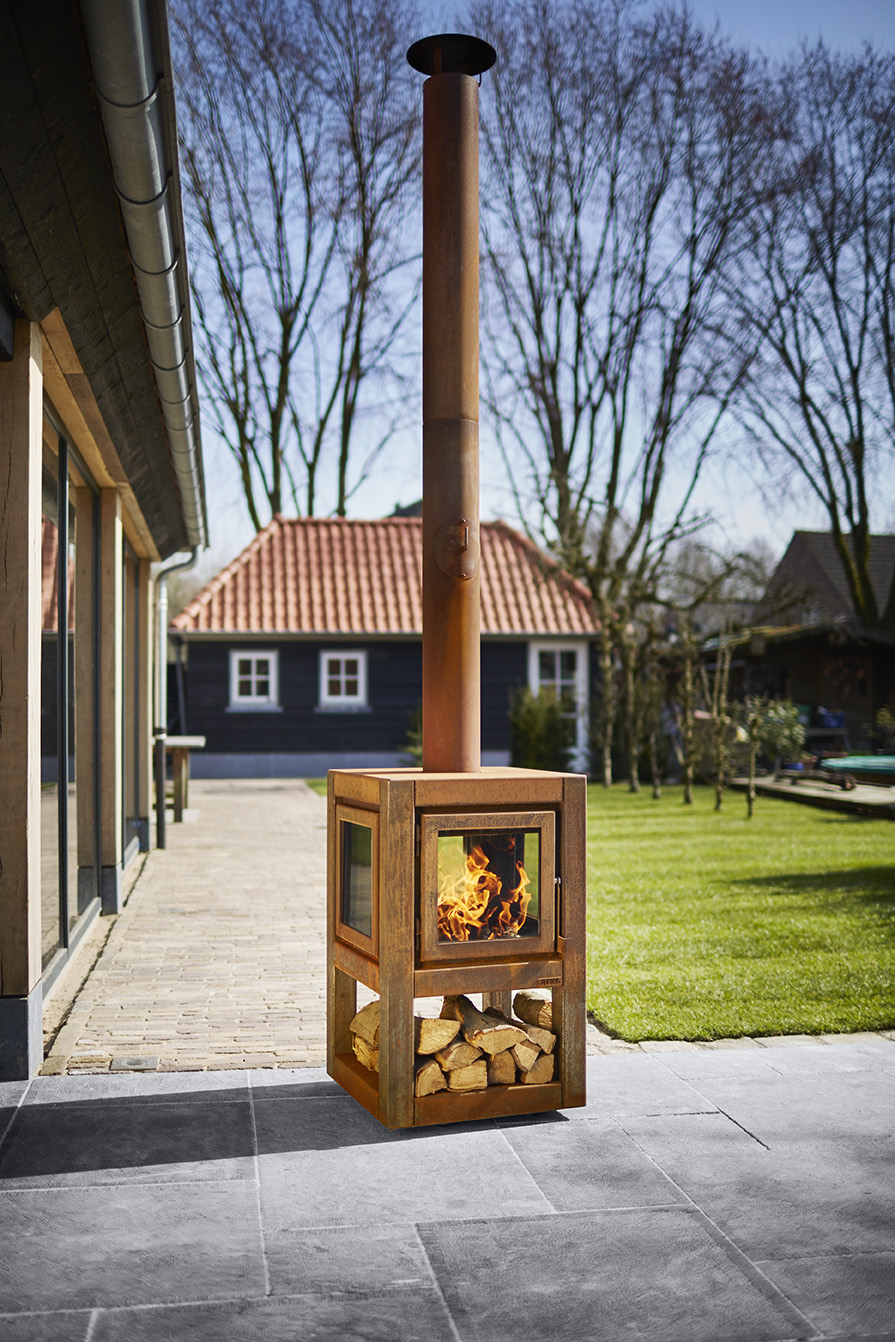 De Reny Quaruba is een robuuste tuinkachel uit Cor-Ten staal. Deze buitenkachel is leverbaar met 1 tot 4 zijdig vuurzicht in de maten L, XL en XXL