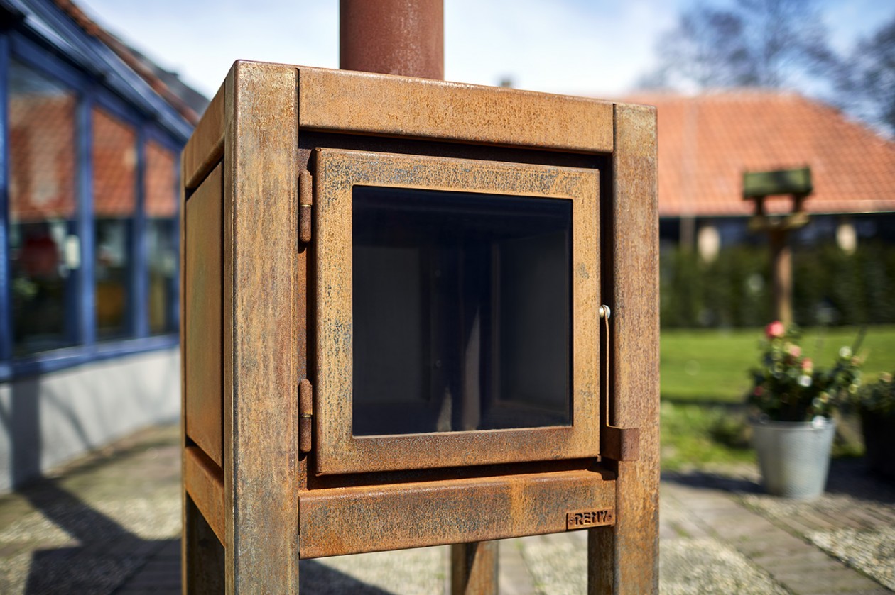 De Reny Quaruba is opgebouwd uit Cor-Ten staal. Het Cor-Ten staal waarvan de RENY terraskachels gemaakt zijn, roest niet door. Zelfs met het Nederlandse klimaat kunt u een RENY tuinkachel zonder problemen buiten laten staan