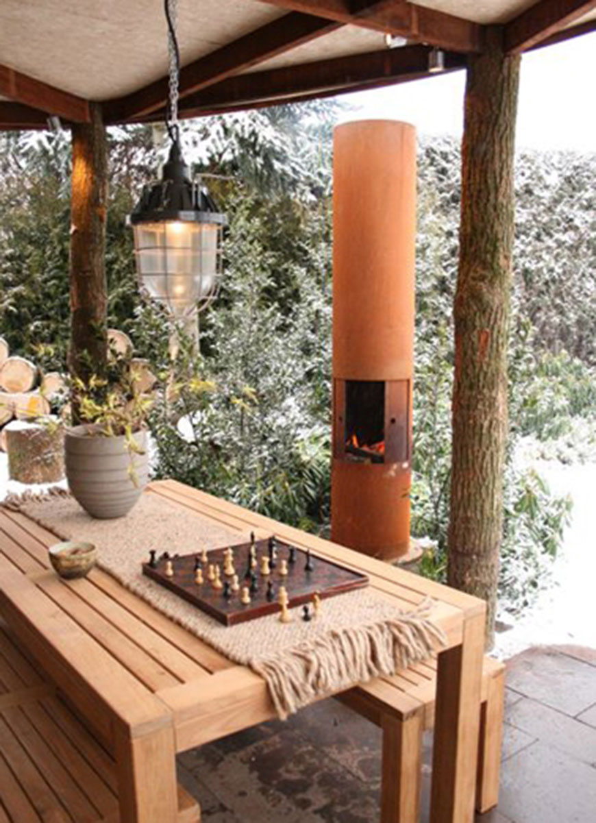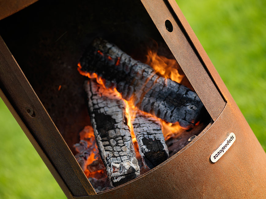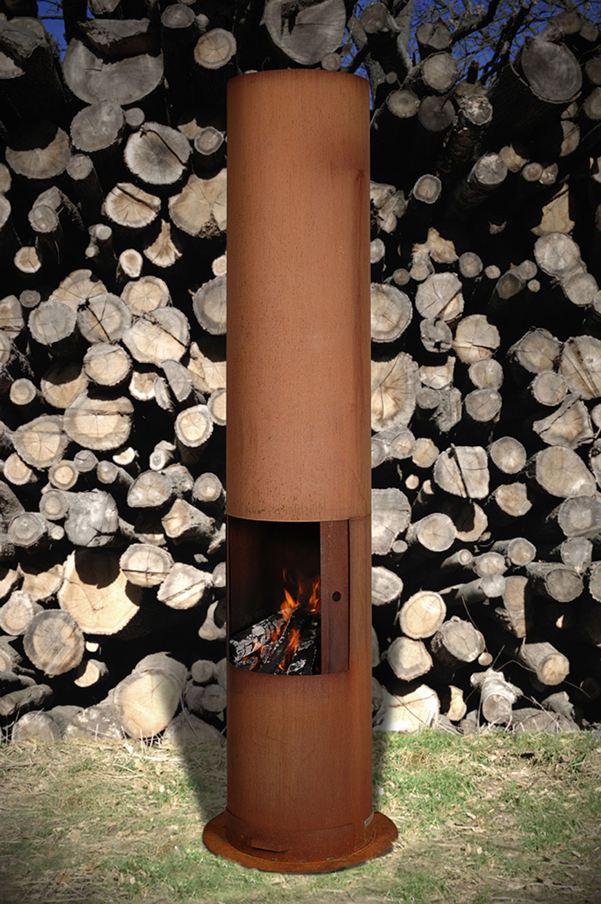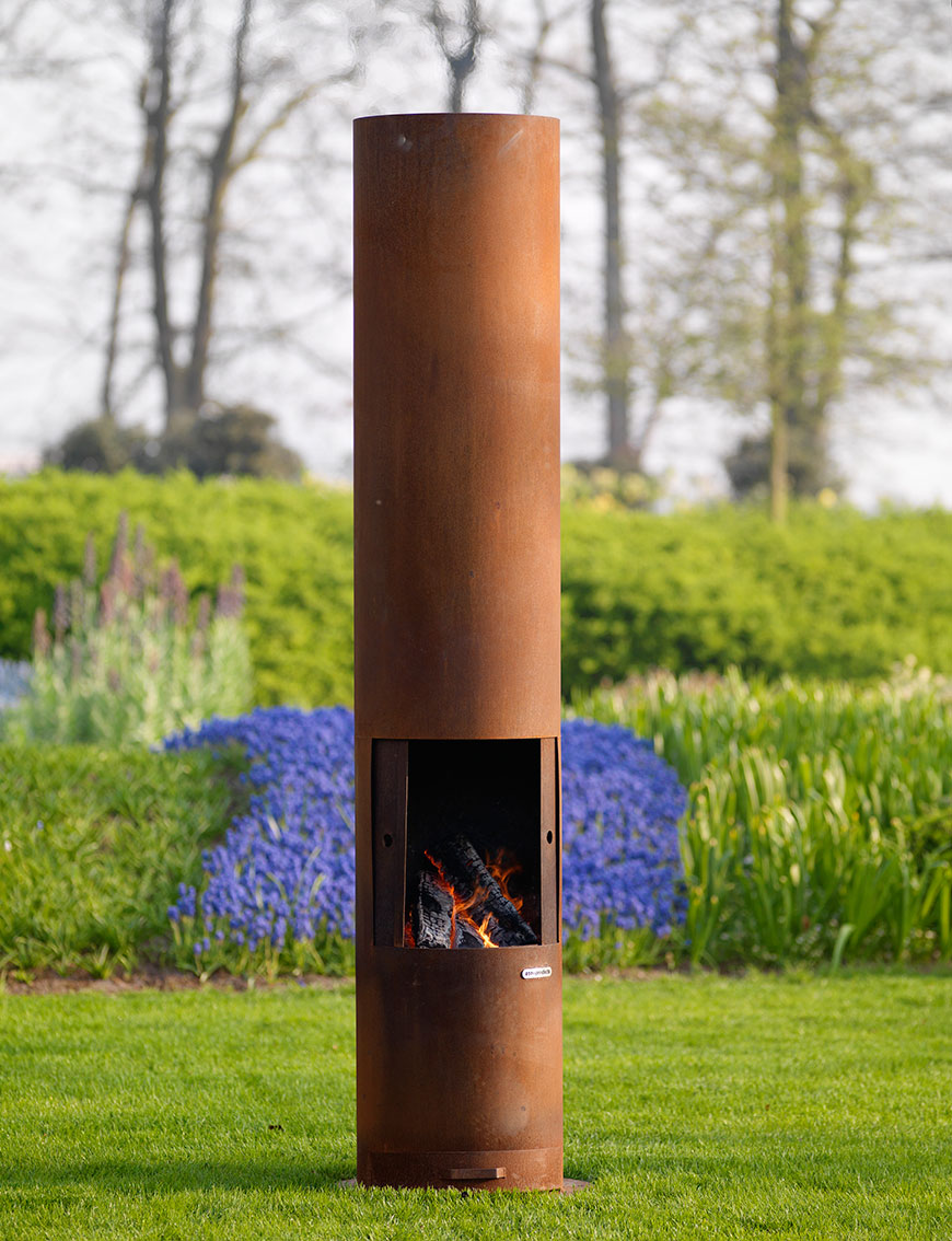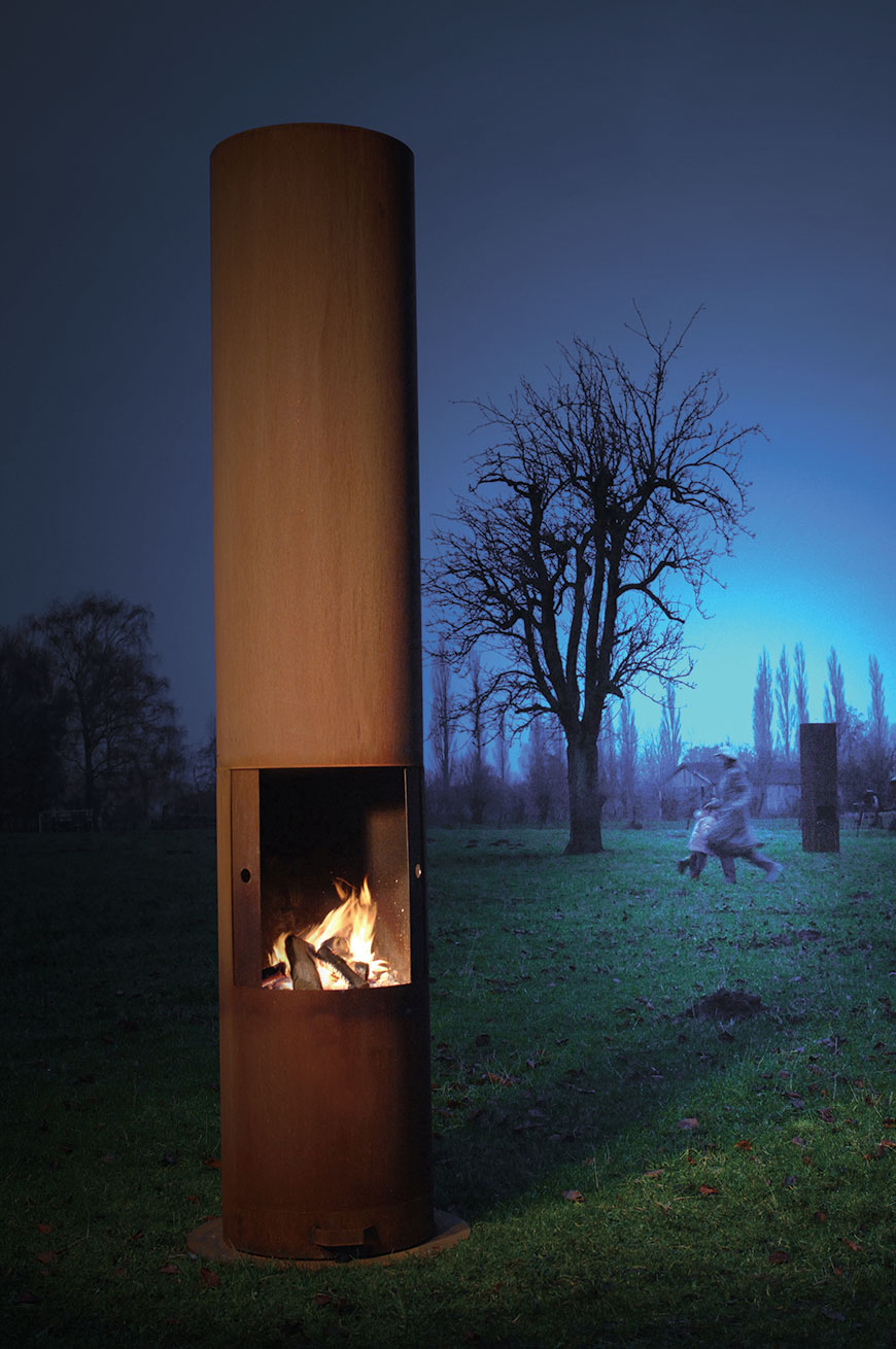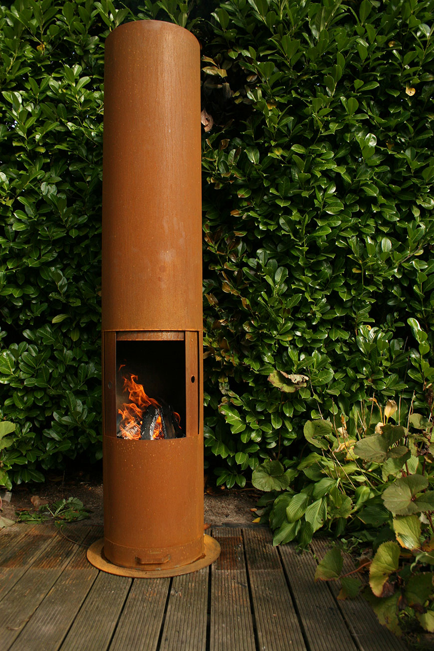 De TUBO is een tuinhaard in onbehandeld of gespoten Cortenstaal. De haard is voorzien van wegschuifbare deuren/windschermen, waardoor u op uw terras een gecontroleerd vuur kunt maken.