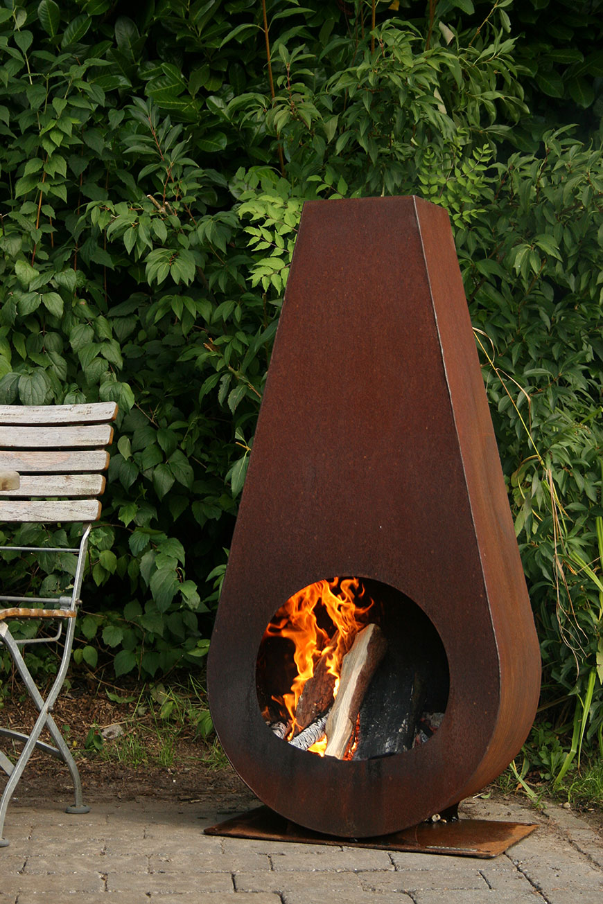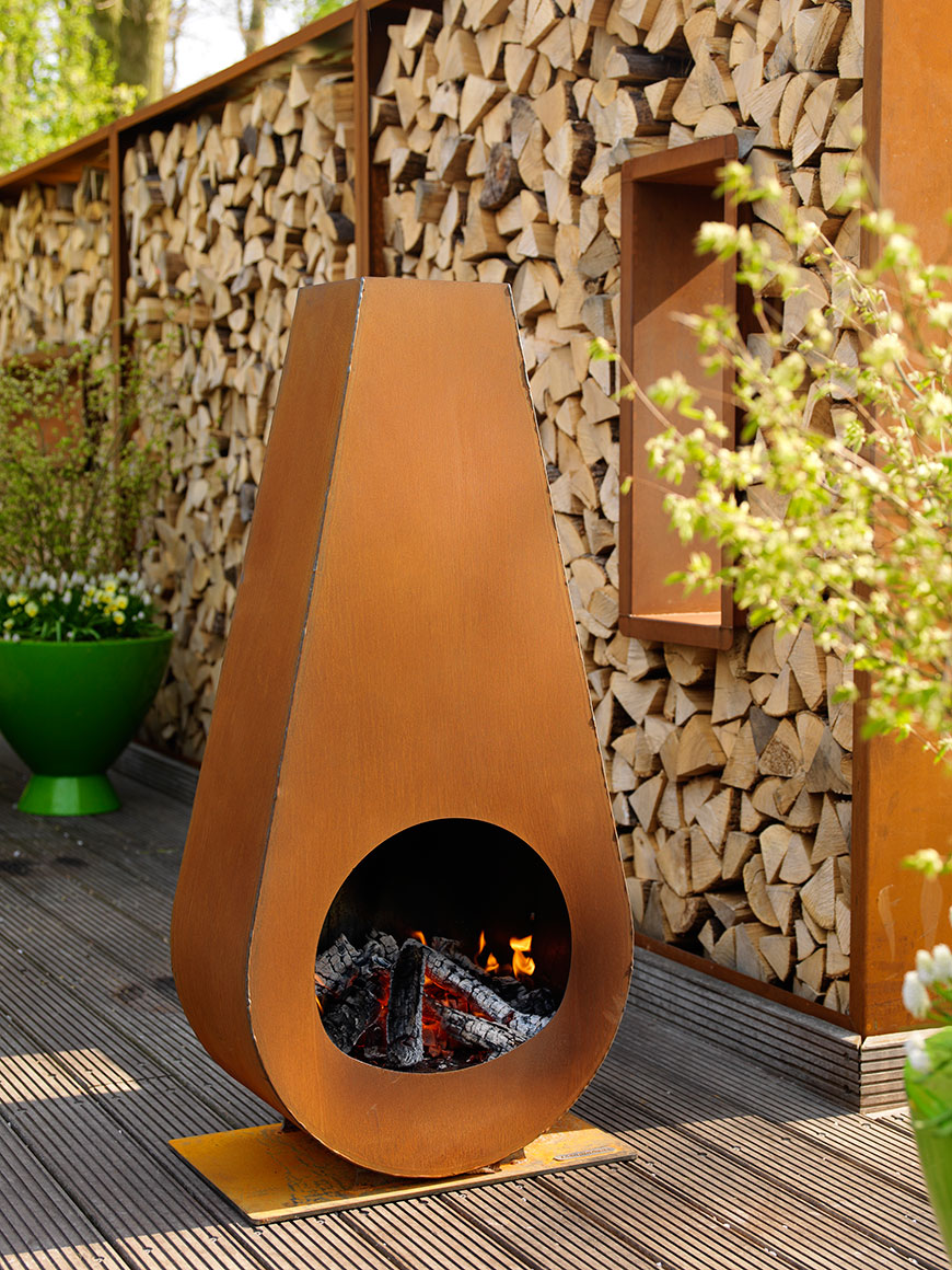 De Zeno Goccia is een buitenhaard verkrijgbaar in onbehandeld of gespoten Cortenstaal. Deze tuinhaard is uitermate geschikt om te plaatsen bij uw loungeset.
