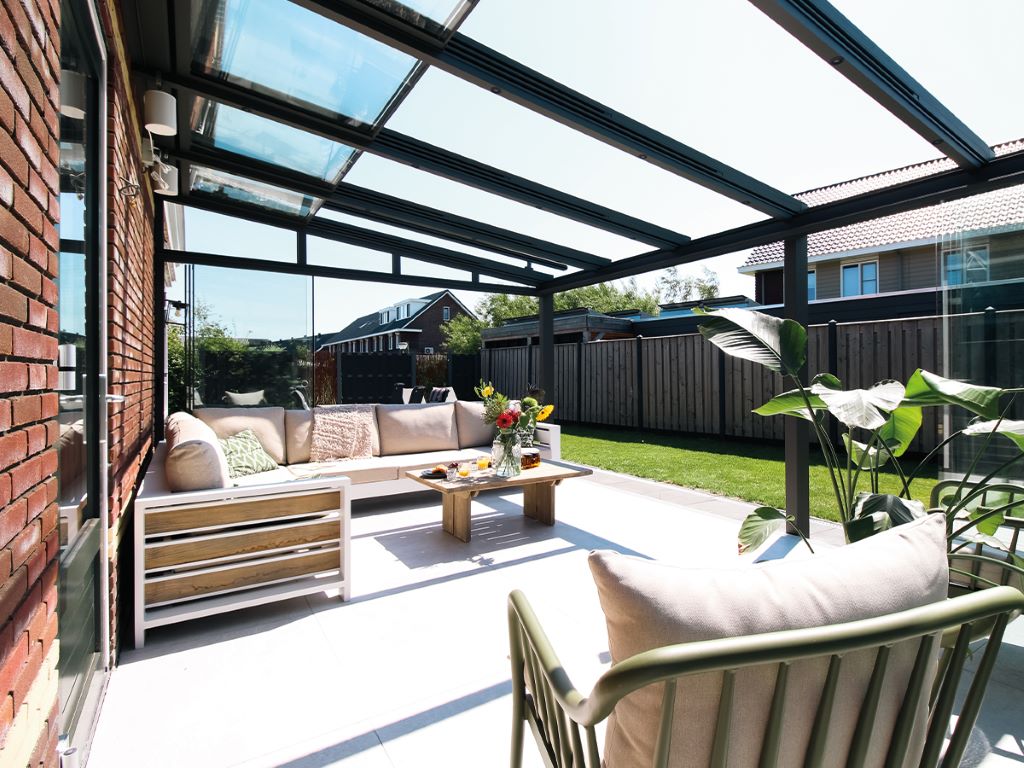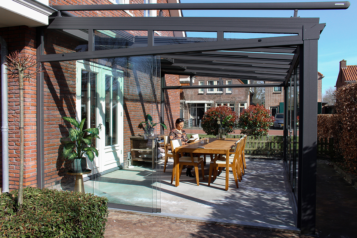 'Wij ervaarden het zelf afgelopen weekend in onze tuinkamer. We zaten met het gezin ieder in een tuinstoel met de aanbevolen 1,5 meter afstand uit elkaar. We hadden ons glazen dak opengeschoven en de wanden gesloten. Het was net of we op het strand zaten bij een luxe strandtent, want we waren van alles voorzien: een muziekje, zon, eten uit onze eigen keuken, een fijne stoel en een warme ruimte buiten. Door de felle zon wordt de tuinkamer namelijk heerlijk snel opgewarmd en zonder last van de (koude) wind.