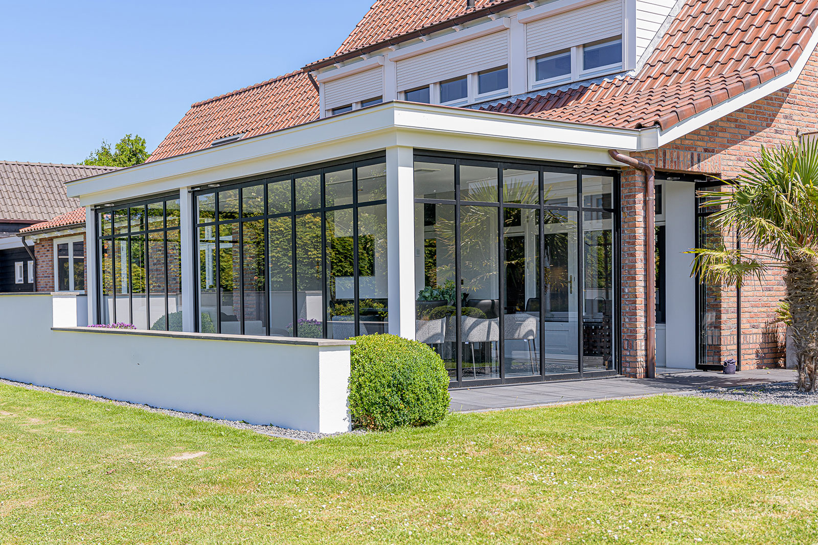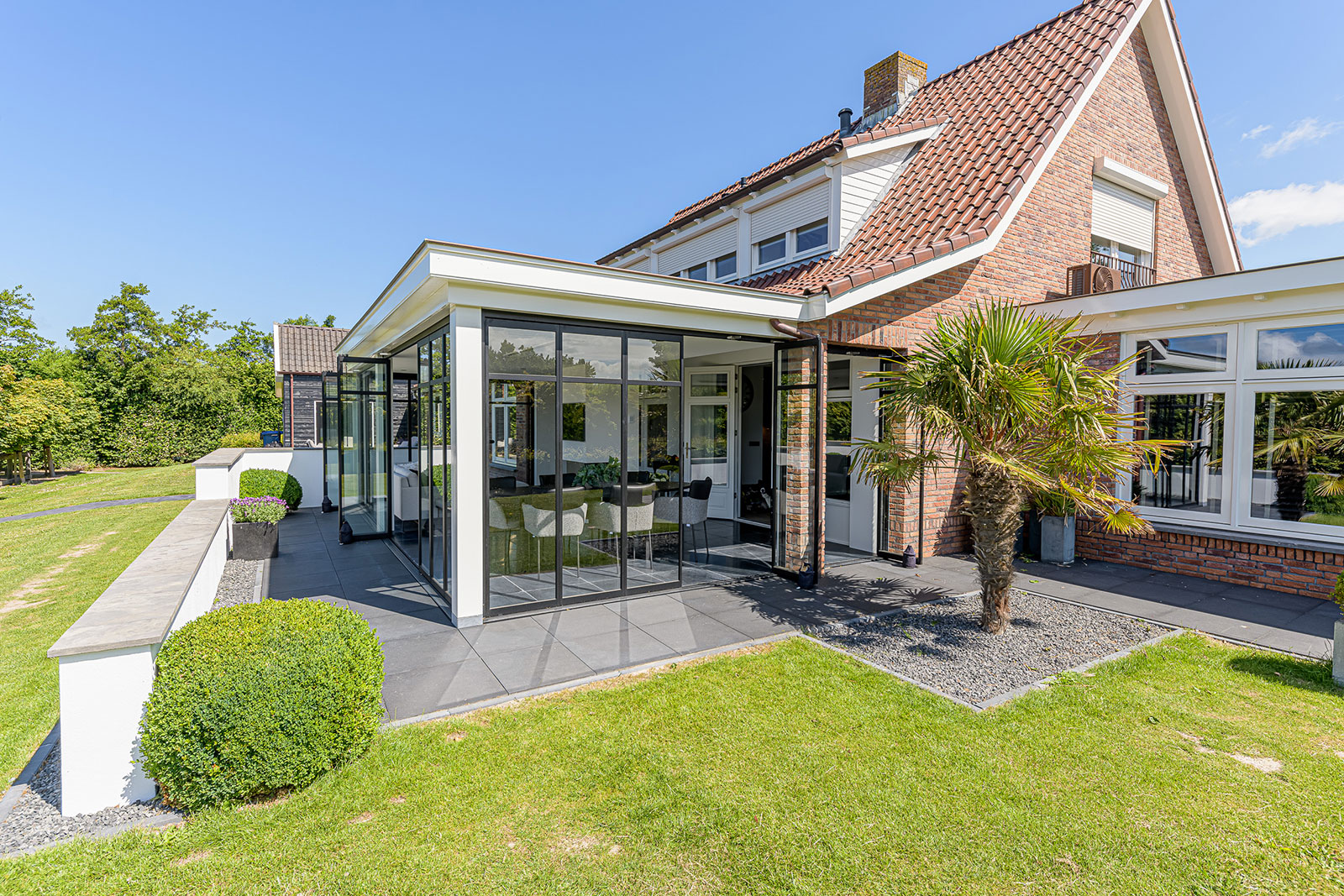 Metalura heeft een Excellent tuinkamer met glazen wanden geplaatst. De tuinkamer is ruimtelijk en licht, en vervult de wens van een tropische binnentuin.