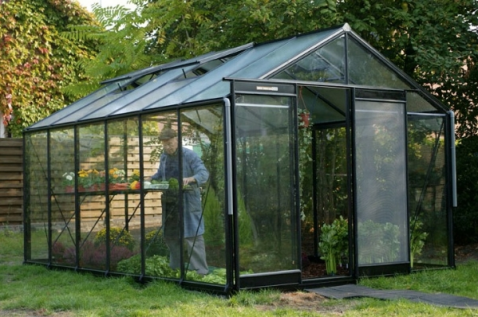 Een romantische kas in retro zwart straalt sfeer en gezelligheid uit. Jouw tuin krijgt onmiddellijk een romantische uitstraling.