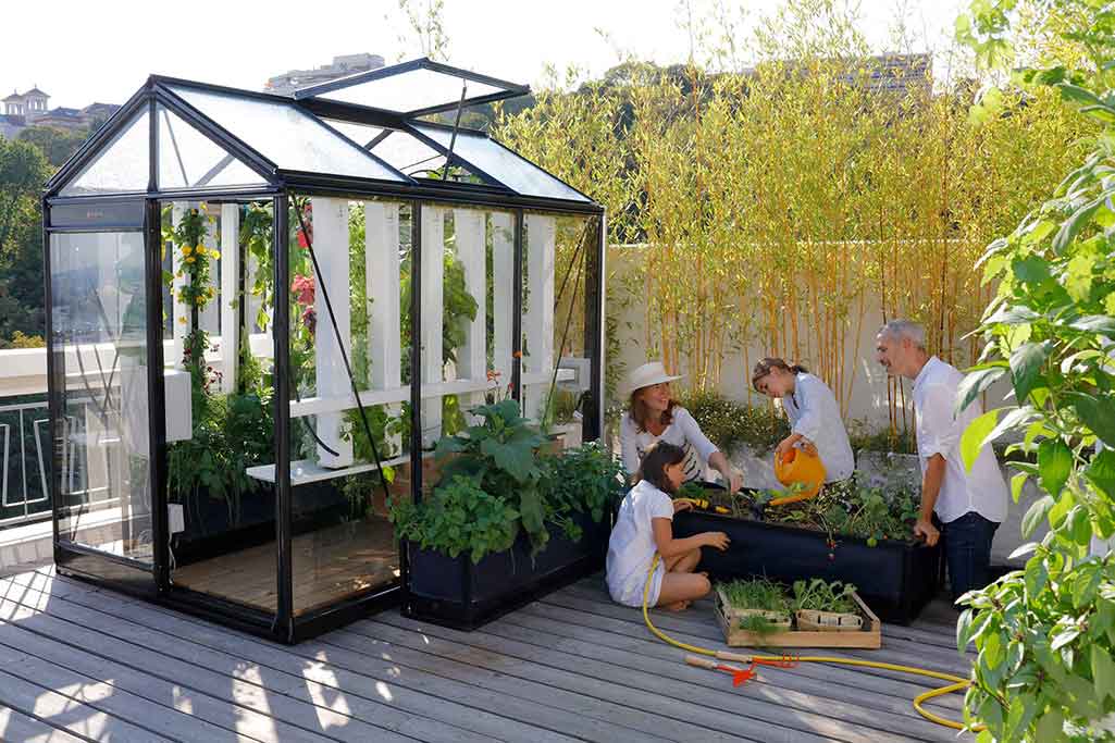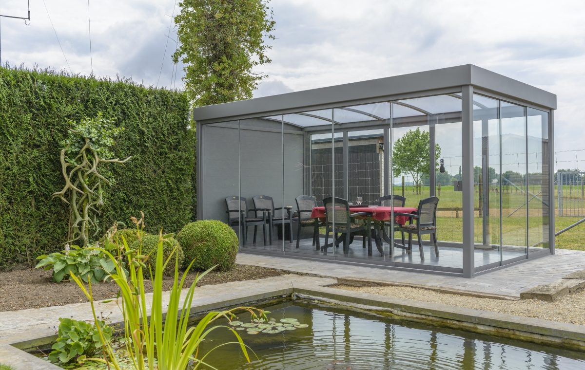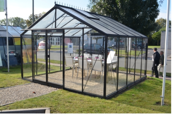 De wanden van de kas zijn gemaakt uit helder glas en het dak uit gehamerd glas. Veiligheidsglas heeft vele voordelen.